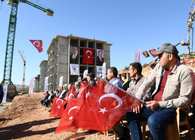 Kahramanmaraş Büyükşehir Belediye Başkanı Hayrettin Güngör, Cumhuriyet tarihinin en büyük sosyal konut hamlesi olan “İlk Evim, İlk İş Yerim Projesi” İlk Temel Atma Töreni çerçevesinde Pazarcık ilçesinde düzenlenen programa katıldı. Cumhurbaşkanı Recep Tayyip Erdoğan’ın Ankara’dan canlı bağlantı gerçekleştirdiği programda Vali Ömer Faruk Coşkun, TBMM İçişleri Komisyon Başkanı Celalettin Güvenç, AK Parti Kahramanmaraş Milletvekili Ahmet Özdemir, AK Parti İl Başkanı Fırat Görgel, MHP İl Başkanı Ertuğrul Doğan, ilçe belediye başkanları, teşkilat mensupları ve çok sayıda vatandaş da yer aldı. Proje kapsamında ilk etapta Kahramanmaraş’ta 210, Türkiye’de ise 17 şehirde toplam 5 bin 615 konutun temeli atıldı.