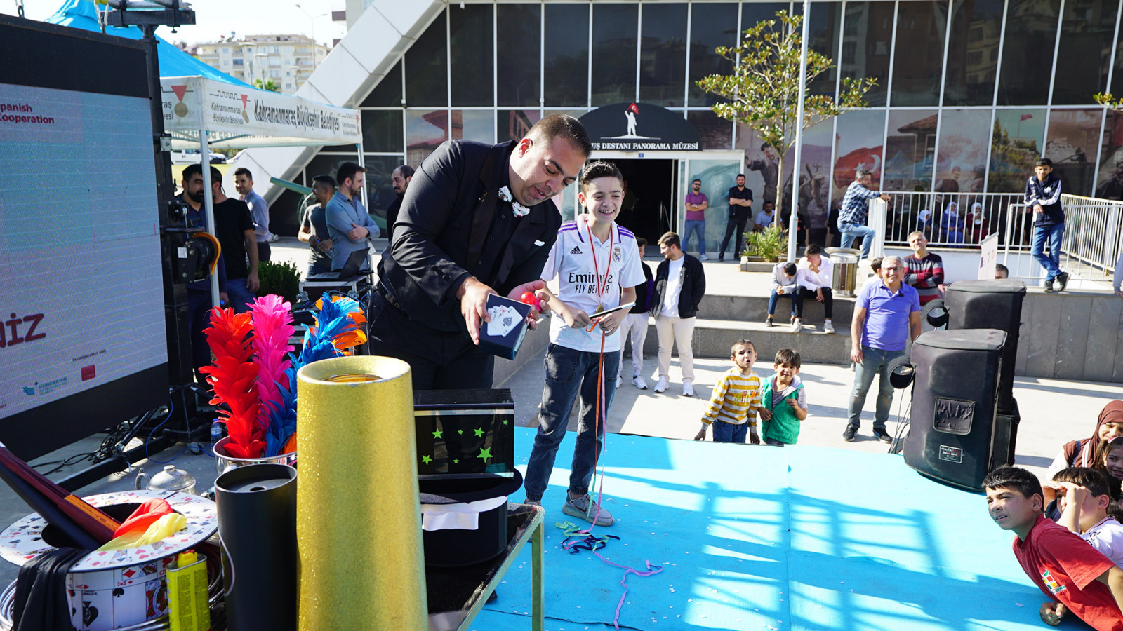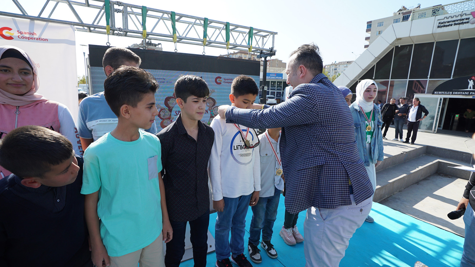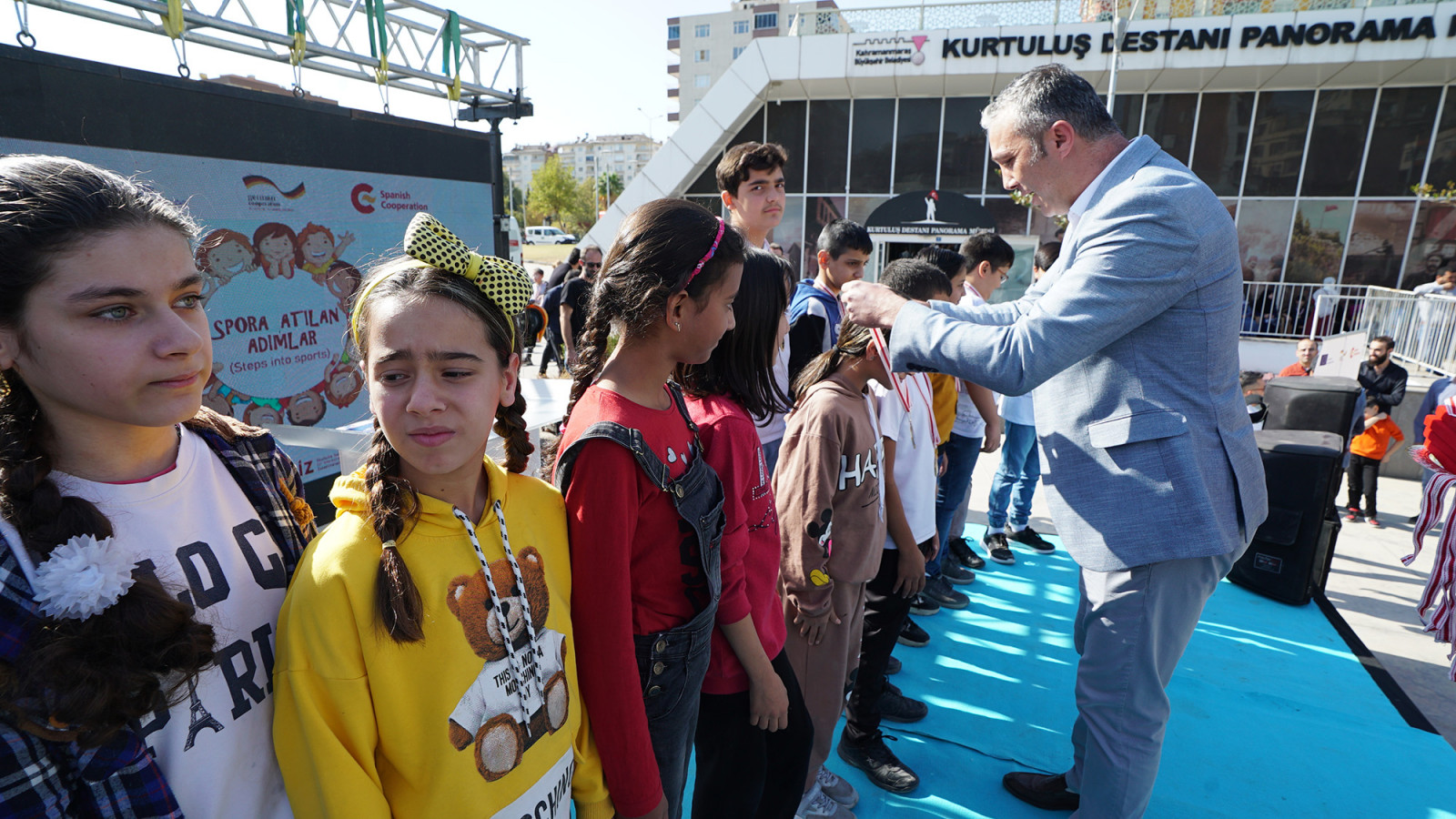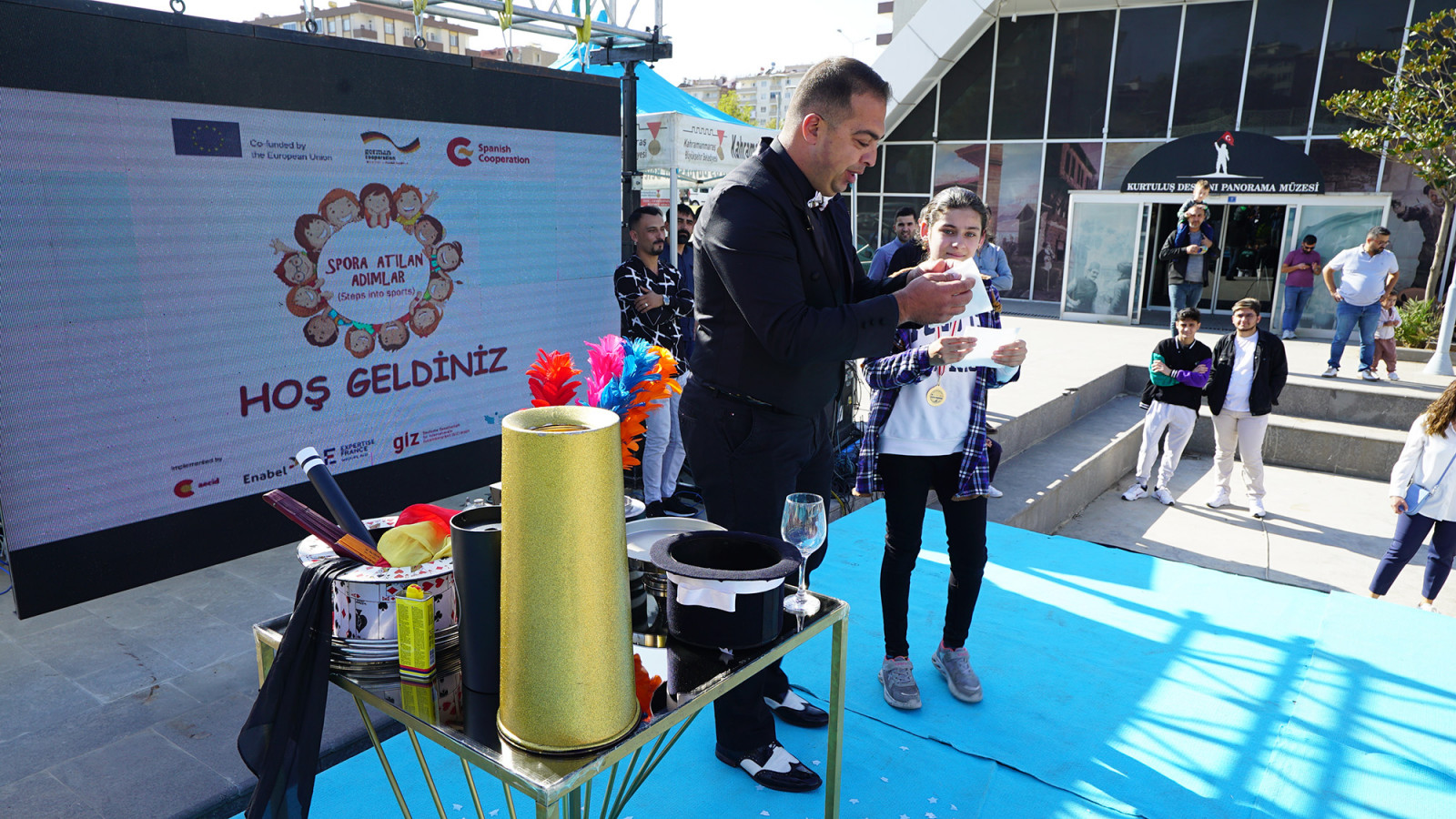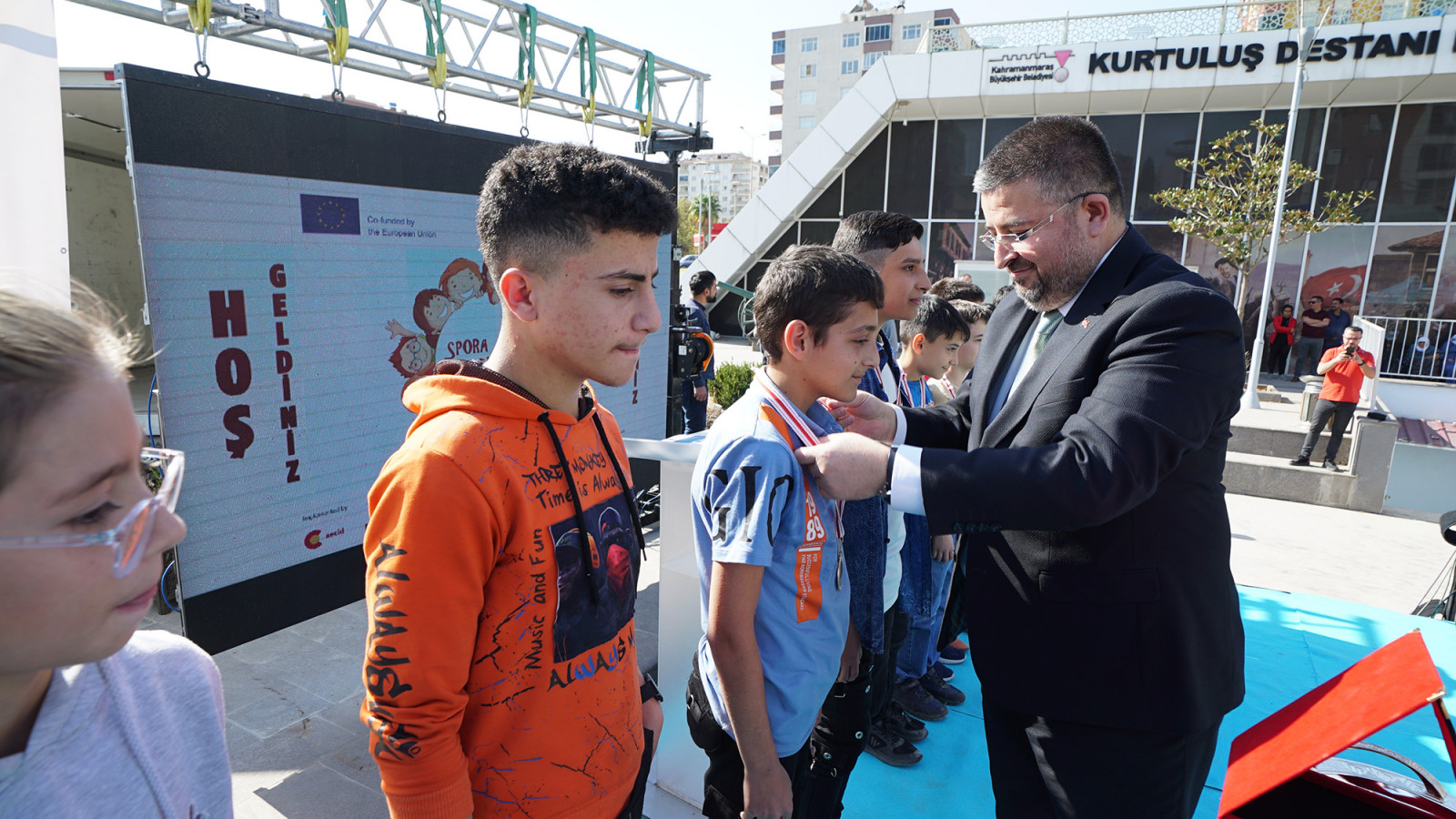 Kahramanmaraş Büyükşehir Belediyesi ve İSAR Derneği iş birliğiyle, Alman Uluslararası İşbirliği Kurumu (GİZ) destekleriyle Qudra – 2 programı kapsamında hayata geçirilen Spora Atılan Adımlar projesinin kapanış etkinliği gerçekleştirildi. Kültür Park’ta gerçekleştirilen programda İSAR Derneği Başkanı Ramazan Kibar, Büyükşehir Belediyesi Dış İlişkiler Dairesi Başkanı Erdoğan Emrah Hatunoğlu, proje eğitmenleri, Spora Atılan Adımlar projesi kapsamında futbol, basketbol ve yüzme branşında eğitim alan öğrenciler ve aileleri yer aldı. Proje eğitmenlerine ve kursiyerlere plaket ile madalya takdiminin yapıldığı kapanış programında çeşitli illüzyon gösterileri, yarışmalar, kareoke ve sinema etkinlikleri de çocuklarla buluşturuldu. Etkinlikte; futbol, basketbol ve yüzme branşlarında 5 ay boyunca çocuklara verilen eğitimlere ilişkin kısa video da katılımcılara izletildi.