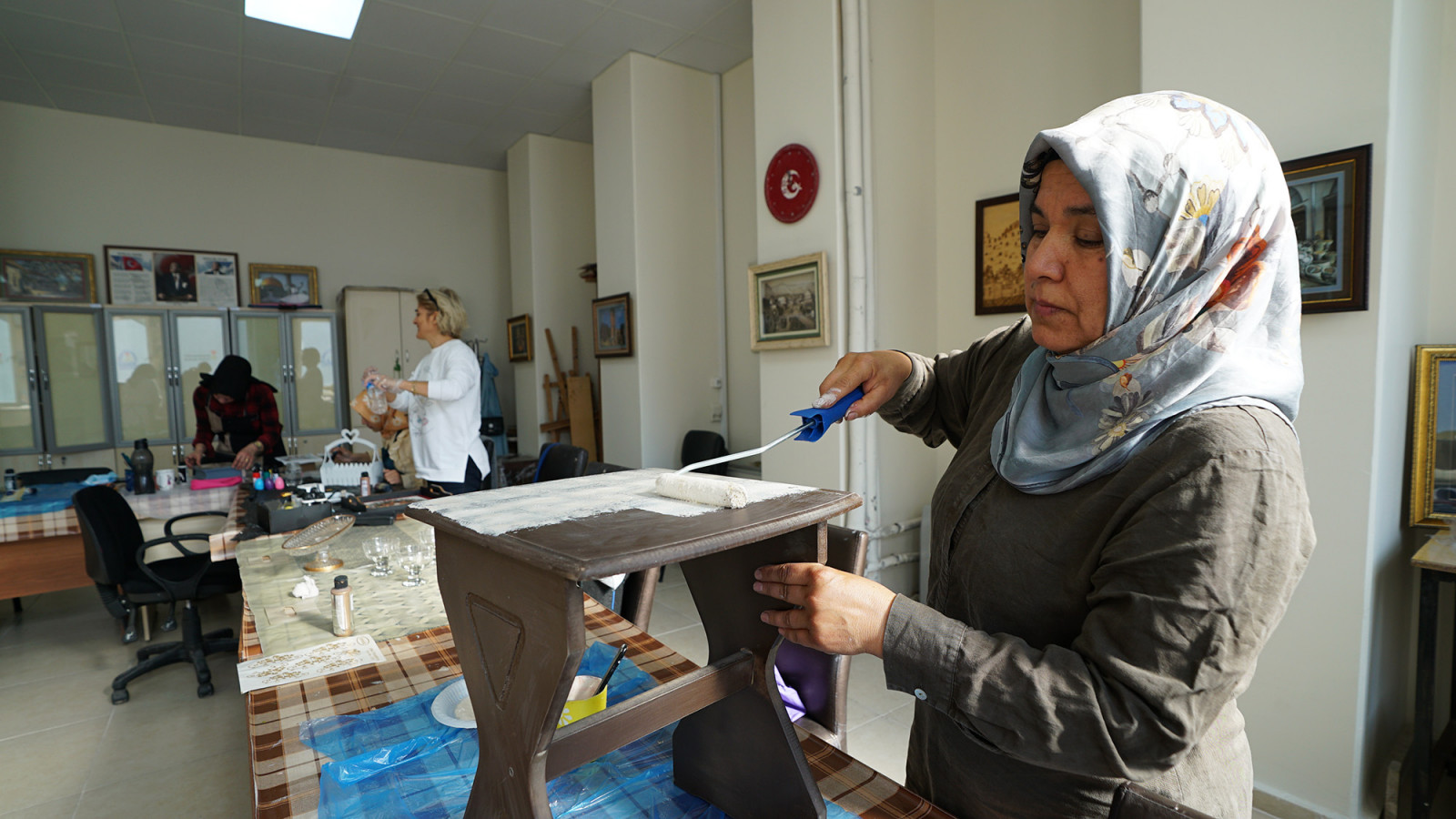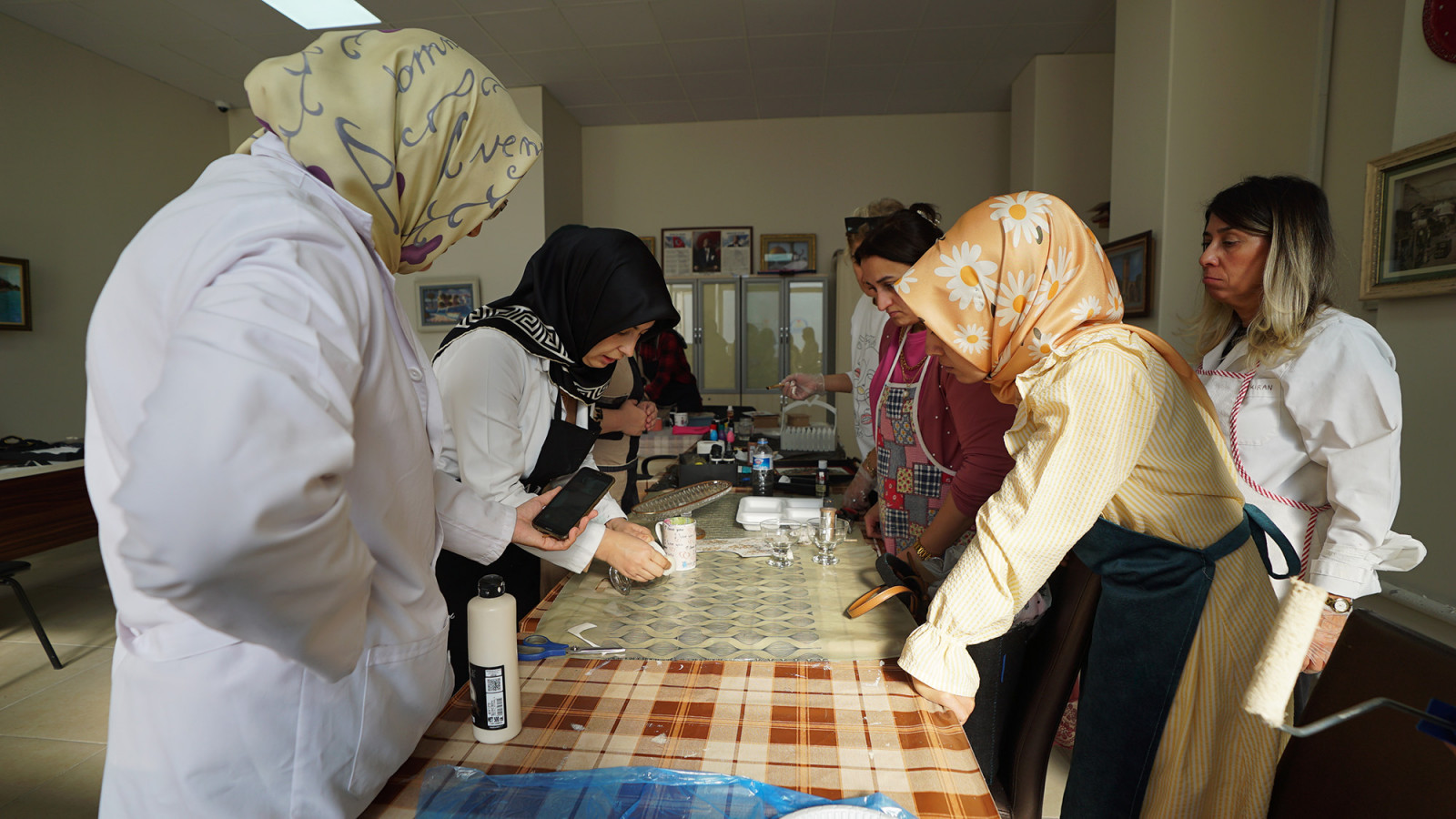 Kahramanmaraş Büyükşehir Belediyesi, sosyal belediyecilik hizmetleri çerçevesinde kültür ve sanat faaliyetlerini vatandaşlarla buluşturmaya devam ediyor. Vatandaşların el becerilerini geliştirmek ve mesleki yeteneklerini artırmalarına katkıda bulunmak için hayata geçirilen Meslek Edindirme ve Sanat Eğitimi Kursları (KAMEK) 36 branş ve bin 59 kursiyerle yeni eğitim dönemine başladı. Büyükşehir Belediyesi KAMEK Kurs Merkezi’nde kursiyerlere verilen eğitimlerden bir tanesi de Ahşap Boyama Atölyesi oldu. Atölyede kursiyerlere uzman eğitmenler tarafından boyama, dekupaj ve transfer teknikleri gibi çeşitli eğitimler veriliyor. Ahşap Boyama Atölyesi’nde eğitim alan kursiyerler, eğitimlerin kendilerine çok katkı sağladığını belirterek Büyükşehir Belediyesi’ne teşekkür etti.