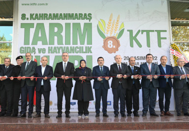 Kahramanmaraş Büyükşehir Belediyesi’nin destekleriyle bu yıl 8’incisi düzenlenen Kahramanmaraş Tarım, Gıda ve Hayvancılık Fuarı’nın açılışı gerçekleştirildi. Kahramanmaraş Fuar Merkezi’nde (KAFUM) düzenlenen fuarın açılış programında Büyükşehir Belediye Başkanı Hayrettin Güngör’ün yanı sıra Vali Ömer Faruk Coşkun, Tarım ve Orman Bakan Yardımcısı Nihat Pakdil, AK Parti Kahramanmaraş Milletvekili Habibe Öçal, AK Parti Kahramanmaraş İl Başkanı Fırat Görgel, Tarım İşletmeleri Genel Müdürü Dr. Hasan Gezginç, KMTSO Başkanı Şahin Balcıoğlu, protokol üyeleri, ilçe belediye başkanları, kurum müdürleri, STK ve sektör temsilcileri ile vatandaşlar da yer aldı.