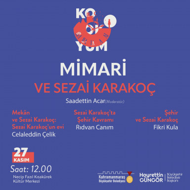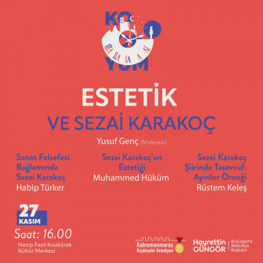 Sezai Karakoç Kolokyumu, 27 Kasım Pazar günü Necip Fazıl Kısakürek Kültür Merkezi’nde Kahramanmaraşlılarla buluşmaya devam edecek. Saat 12.00’da Mimari ve Sezai Karakoç, 16.00’da Estetik ve Sezai Karakoç, 19.00’da ise Sezai Karakoç: Görsel ve İşitsel Sanatlar konulu etkinlikler gerçekleştirilecek. Büyükşehir Belediyesi’nden yapılan açıklamada, düşünce ve fikir insanı Sezai Karakoç’un hayatının, eserlerinin ve sanatının farklı açılardan ele alınacağı söyleşilere tüm edebiyatseverlerin davetli olduğu belirtildi.