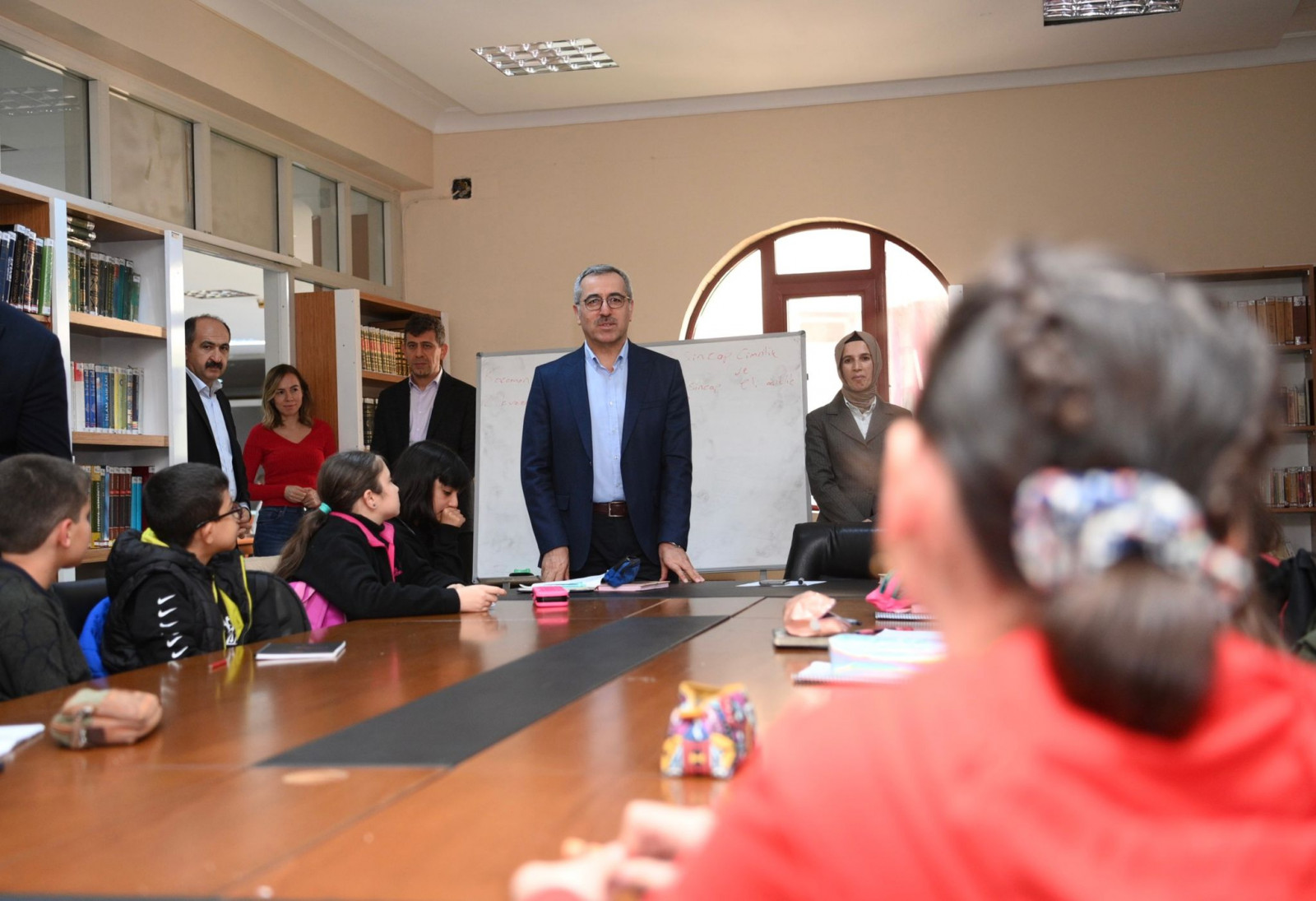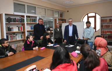 Necip Fazıl Kısakürek Kültür Merkezi Kütüphanesi’nde çocuk ve gençlerle bir araya gelen Başkan Hayrettin Güngör, “Geleceğimizin teminatı gençlerimizle bir araya gelmek, yüzlerindeki tebessüme şahit olmak mutluluk verici. Tüm gençlerimize eğitim hayatlarında başarılar diliyorum” dedi.