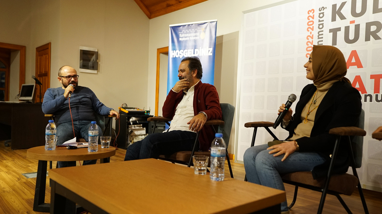 Sezai Karakoç Kültür Sanat Sezonu’nda çeşitli etkinlikleri vatandaşlarla buluşturmayı sürdüren Kahramanmaraş Büyükşehir Belediyesi; Nihayet Dergisi Genel Yayın Yönetmeni Ahmet Murat, Yazı İşleri Şefi Kübra Kuruali Yaşar, Dijital Medya Editörü Burak Manav, Editör Aleyna Ayan ve Merve Akbaş’ın katılımıyla ‘Nihayet Dergi Okur Buluşması’ adlı söyleşi etkinliği düzenledi. Yedi Güzel Adam Edebiyat Müzesi’nde gerçekleştirilen söyleşide konuşmacılar; dergicilik, yazın hayatı, dergicilik ve sosyal medya, okuma alışkanlığı ve dergi okuyuculuğu gibi pek çok konuyu farklı açılardan ele aldı. Yaklaşık bir buçuk saat süren söyleşide konuşmacılar, katılımcılardan gelen soruları da büyük bir samimiyetle yanıtladı. Edebiyatseverler, etkinlikten duyduğu memnuniyeti belirterek Büyükşehir Belediyesi’ne ve Nihayet Dergisi’nin usta kalemlerine teşekkür etti.