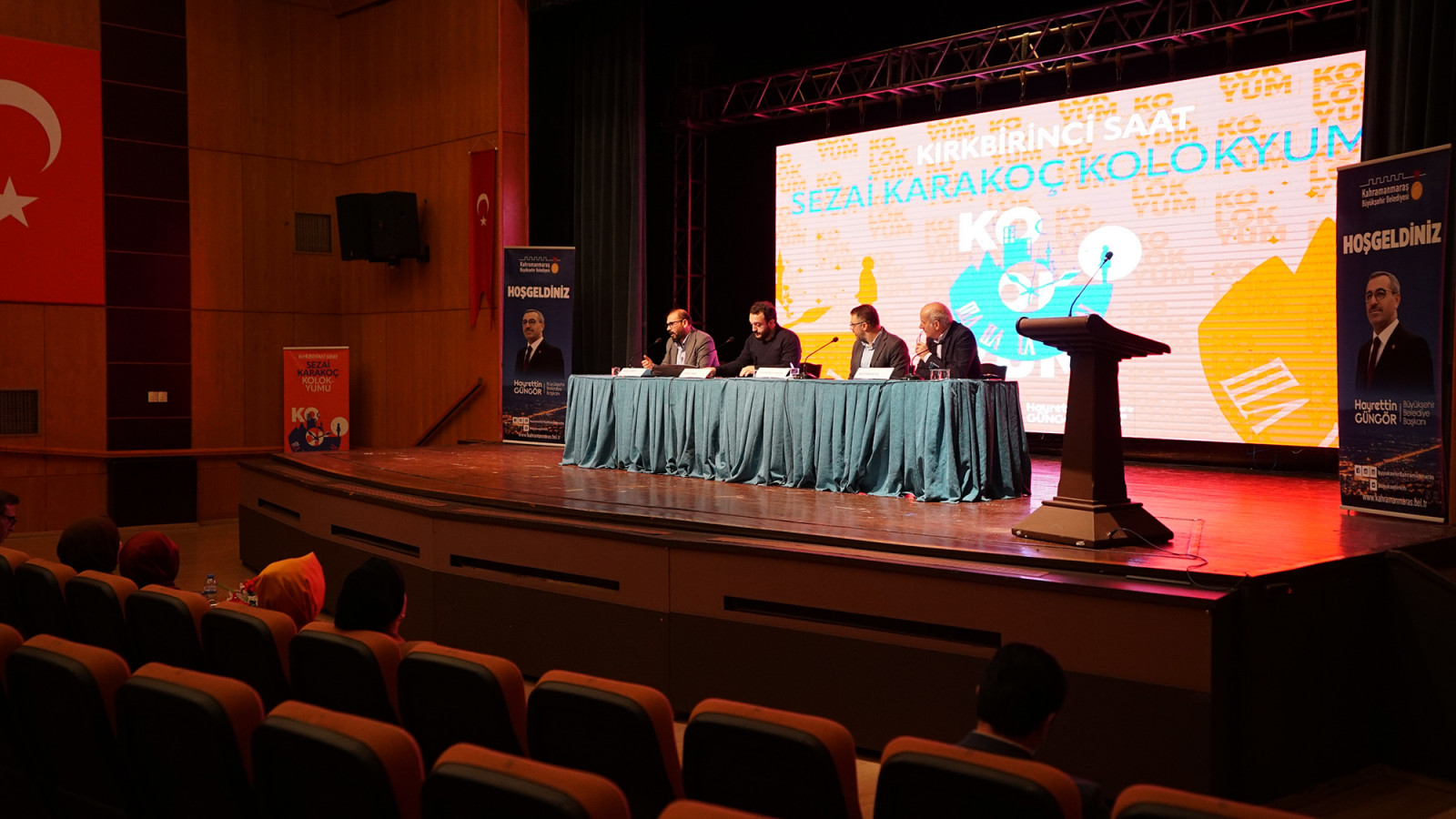 Sezai Karakoç’un eserlerinin ve sanatının usta kalemler ve alanında uzman isimler tarafından ele alındığı Sezai Karakoç Kolokyumu, düzenlenen ‘Sezai Karakoç: Görsel ve İşitsel Sanatlar’ konulu söyleşi etkinliğiyle noktalandı. Necip Fazıl Kısakürek Kültür Merkezi’nde Yazar Mustafa Köneçoğlu moderatörlüğünde gerçekleştirilen etkinlikte Yazar Enver Gülşen, Yılmaz Daşçıoğlu ve Hakan Şarkdemir, Karakoç’un şiir, sinema, resim, mimari gibi görsel ve işitsel sanatlara yaklaşımını farklı açılardan ele aldı. Etkinlikte konuşan Hakan Şarkdemir, “Sezai Karakoç’ta aslında biz nesnelerden ya da imgelerden hep insana varıyoruz. İnsandan gerçeğin anlamını çıkarıyoruz. Bu bilinçli olarak Sezai Karakoç tarafından yapılıyor” ifadelerini kullandı.