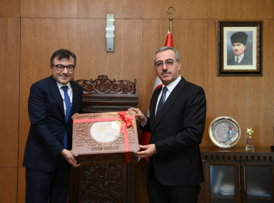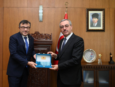 Kahramanmaraş Büyükşehir Belediye Başkanı Hayrettin Güngör, bir dizi programa katılmak için şehre gelen Cumhurbaşkanlığı Finans Ofisi Başkanı Prof. Dr. Göksel Aşan’ı makamında ağırladı. Kahramanmaraş’ın Milli Mücadelesi, şehrin sembolü olan İstiklal Madalyası, coğrafi işaretli ürünleri ve kültür sanat etkinlikleri hakkında Prof. Dr. Aşan’a bilgiler aktaran Başkan Hayrettin Güngör, Kahramanmaraş’a özgü çeşitli hediyeler de takdim etti. Ziyaretten duyduğu memnuniyeti belirterek Finans Ofisi Başkanı Prof. Dr. Göksel Aşan’a teşekkür eden Güngör, “Programı kapsamında Kahramanmaraş’ımıza gelen Cumhurbaşkanlığı Finans Ofisi Başkanımız Sayın Prof. Dr. Göksel Aşan’ı misafir ettik. Kahramanmaraş’ımızın tarihini, kültürünü, gastronomisini ve değerlerini konuştuk. Nazik ziyaretleri için Sayın Göksel Aşan’a teşekkür ediyorum” dedi.