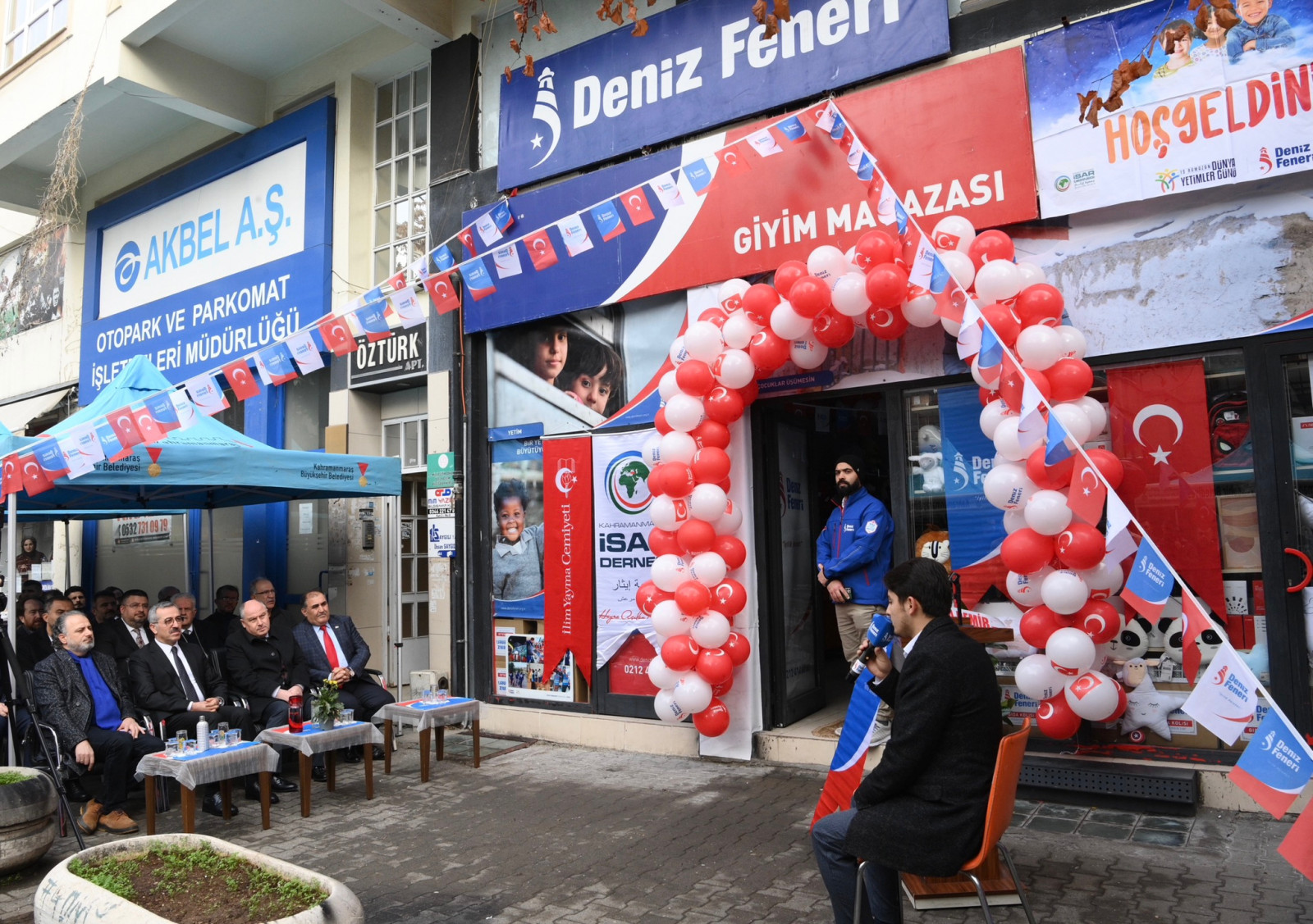 Kahramanmaraş Büyükşehir Belediye Başkanı Hayrettin Güngör; Deniz Feneri Yardımlaşma ve Dayanışma Derneği, İlim Yayma Cemiyeti ve İSAR Derneği iş birliğiyle ihtiyaç sahiplerine yönelik hayata geçirilen Geçici Giyim Mağazası’nın açılışına katıldı. Programda; Vali Ömer Faruk Coşkun, Onikişubat Kaymakamı Serkan Keçeli, Dulkadiroğlu Kaymakamı Dr. Fatih Çelikkaya, Büyükşehir Belediyesi Meclis Üyeleri, STK temsilcileri ve vatandaşlar da yer aldı. Kur’an-ı Kerim Tilaveti ile başlayan programda Başkan Hayrettin Güngör ve protokol üyeleri tarafından kesilen kurdeleyle birlikte Geçici Giyim Mağazası’nın açılışı gerçekleştirildi.