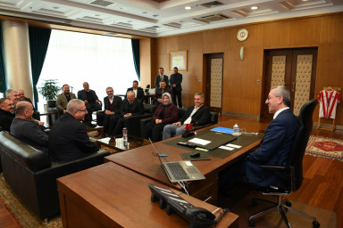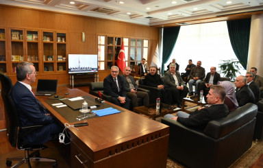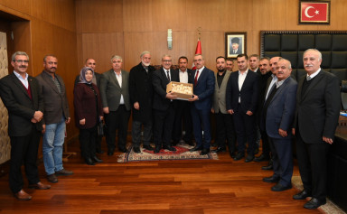 Kahramanmaraş Büyükşehir Belediye Başkanı Hayrettin Güngör, Pazarcık Belediye Başkanı İbrahim Yılmazcan ve meclis üyelerini makamında ağırladı. Pazarcık’ın ihtiyaçları, hayata geçirilen ve planlanan yatırımlara ilişkin değerlendirmelerin yapıldığı toplantı sonrası açıklamalarda bulunan Başkan Hayrettin Güngör, “Pazarcık Belediye Başkanı İbrahim Yılmazcan ve meclis üyelerimizi misafir ettik. Pazarcık ilçemizde hayata geçirdiğimiz ve planladığımız yatırımlara ilişkin istişarelerde bulunduk. Nazik ziyaretleri için belediye başkanımıza ve meclis üyelerimize teşekkür ediyorum” ifadelerini kullandı.