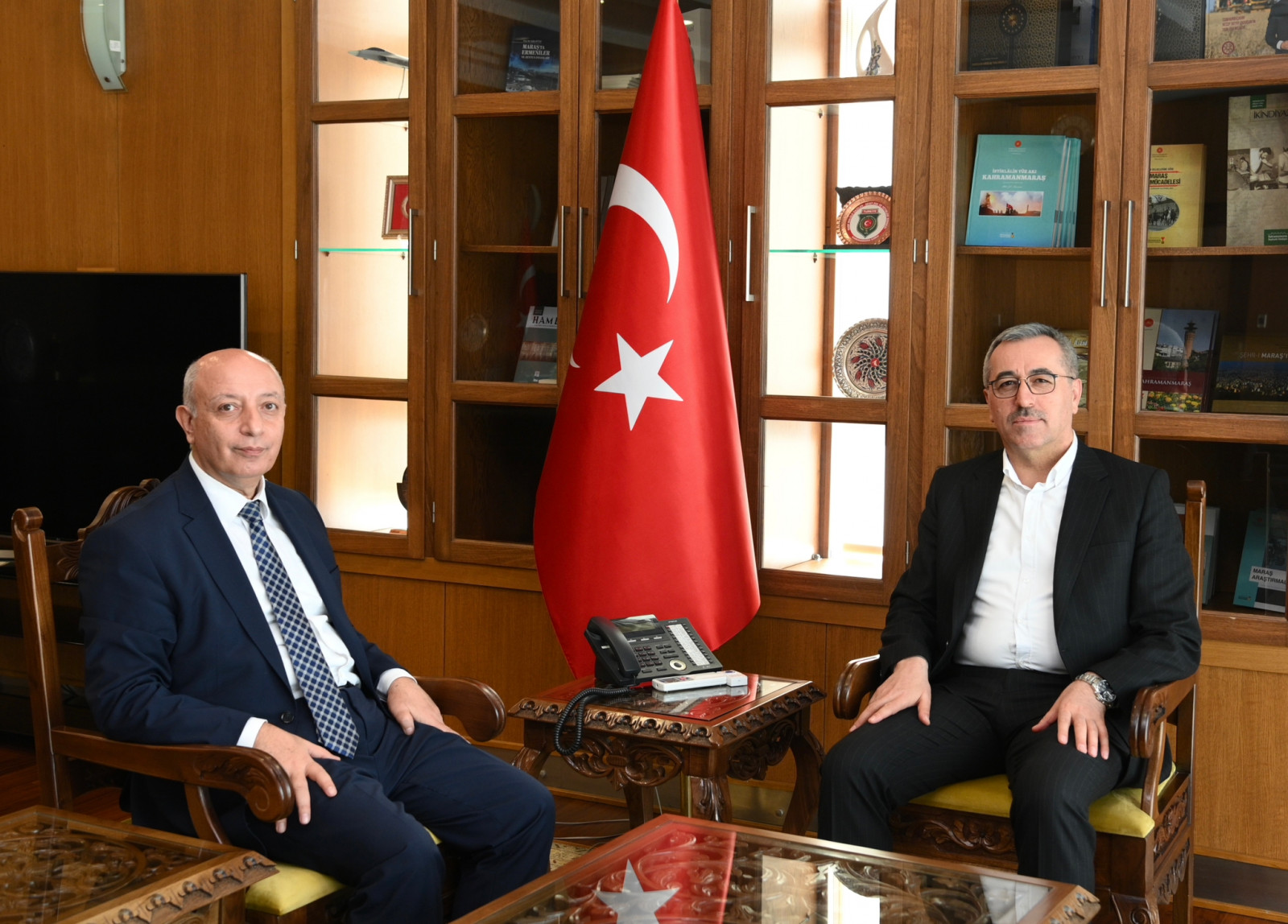 Kahramanmaraş Büyükşehir Belediye Başkanı Hayrettin Güngör, Cumhurbaşkanlığı Kararı ile Kahramanmaraş İstiklal Üniversitesi Rektörü olarak atanan Prof. Dr. İsmail Bakan’ı makamında ağırladı. Ziyareti için Bakan’a teşekkür eden Başkan Hayrettin Güngör, “Kahramanmaraş İstiklal Üniversitesi Rektörü olarak atanan Sayın İsmail Bakan’ı misafir ettik. Nazik ziyaretleri için Bakan’a teşekkür ediyor, yeni görevinde muvaffakiyetler diliyorum. Eğitime ve gençlerimize hizmet noktasında el birliğiyle çalışmaya devam edeceğiz” dedi. Kahramanmaraş İstiklal Üniversitesi Rektörü İsmail Bakan da misafirperverliği için Başkan Hayrettin Güngör’e teşekkür etti.