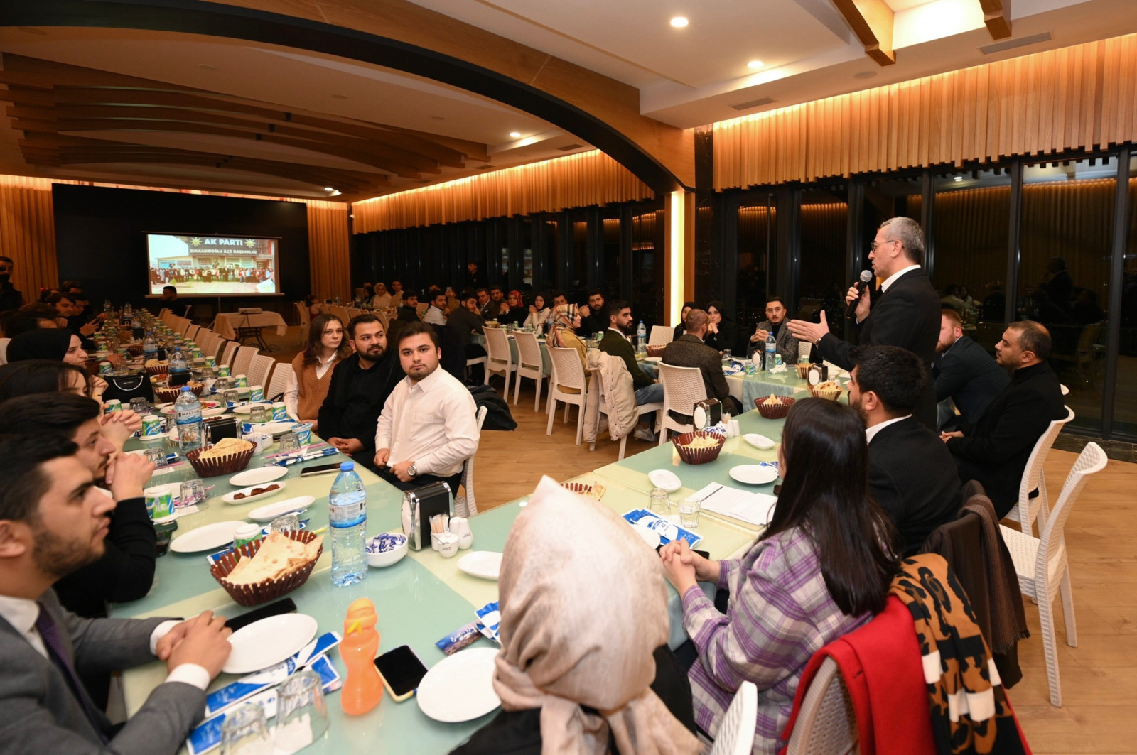 Kahramanmaraş Büyükşehir Belediye Başkanı Hayrettin Güngör, Şairler Tepesi’nde düzenlenen AK Parti Kahramanmaraş İl Gençlik Kolları Yönetim Kurulu Toplantısı’na katıldı. AK Parti Gençlik Kolları Başkanı Feyzullah Eren Aşçı ve yönetiminin yer aldığı toplantıda Başkan Hayrettin Güngör, gelen soruları büyük bir samimiyetle yanıtladı. Başkan Güngör programda; Büyükşehir Belediyesi tarafından şehirde ulaşımdan altyapıya, kültür sanattan turizme, üstyapıdan spora tüm alanlarda hayata geçirilen ve planlanan yatırımlar hakkında da gençlere bilgiler aktardı. Nazik davetleri için AK Parti Gençlik Kolları Başkanı Feyzullah Eren Aşçı ve yönetimine teşekkür eden Başkan Hayrettin Güngör, toplantının hayırlara vesile olmasını diledi.