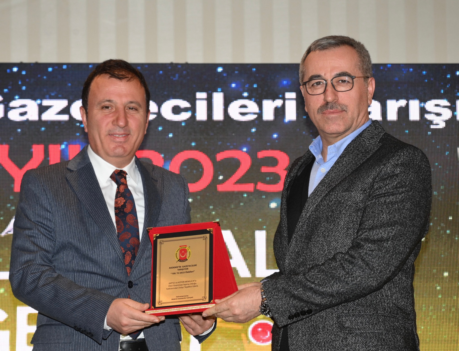 Kahramanmaraş Büyükşehir Belediye Başkanı Hayrettin Güngör, Kahramanmaraş Akdeniz Gazeteciler Cemiyeti tarafından bu yıl ilki düzenlenen “Akdeniz’in Gazetecileri Yarışıyor” programının ödül töreni ve gala gecesine katıldı. Ödül töreninde; Vali Ömer Faruk Coşkun, AK Parti Kahramanmaraş Milletvekilleri Ahmet Özdemir, Cihat Sezal ve Habibe Öçal, KSÜ Rektörü Prof. Dr. Alptekin Yasım, KİÜ Rektörü Prof. Dr. İsmail Bakan, AK Parti Yerel Yönetimler Başkan Yardımcısı Veli Böke, ilçe belediye başkanları, oda başkanları ve basın mensupları da yer aldı. Saygı duruşu ve İstiklal Marşı’nın okunmasıyla başlayan program, son 2 yıl içerisinde ahirete göç eden basın mensuplarının hayatını anlatan kısa film gösterimi ile devam etti. ‘100. Yıl 2023 Ödülleri’ temalı yarışmada; Haber, Fotoğraf, Görüntü, TV Programı, Tasarım, Köşe Yazarı, Spor Haberi ve İnternet Portalı olmak üzere toplamda 8 kategoride ödül sahipleriyle buluştu. Büyükşehir Belediye Başkanı Hayrettin Güngör ve protokol üyeleri, ödülleri basın mensuplarına takdim ederek başarılarının devamını diledi. Program, Türk Halk Müziği Sanatçısı Hatice Gökçeli ve Furkan Pehlivan konseriyle noktalandı.
