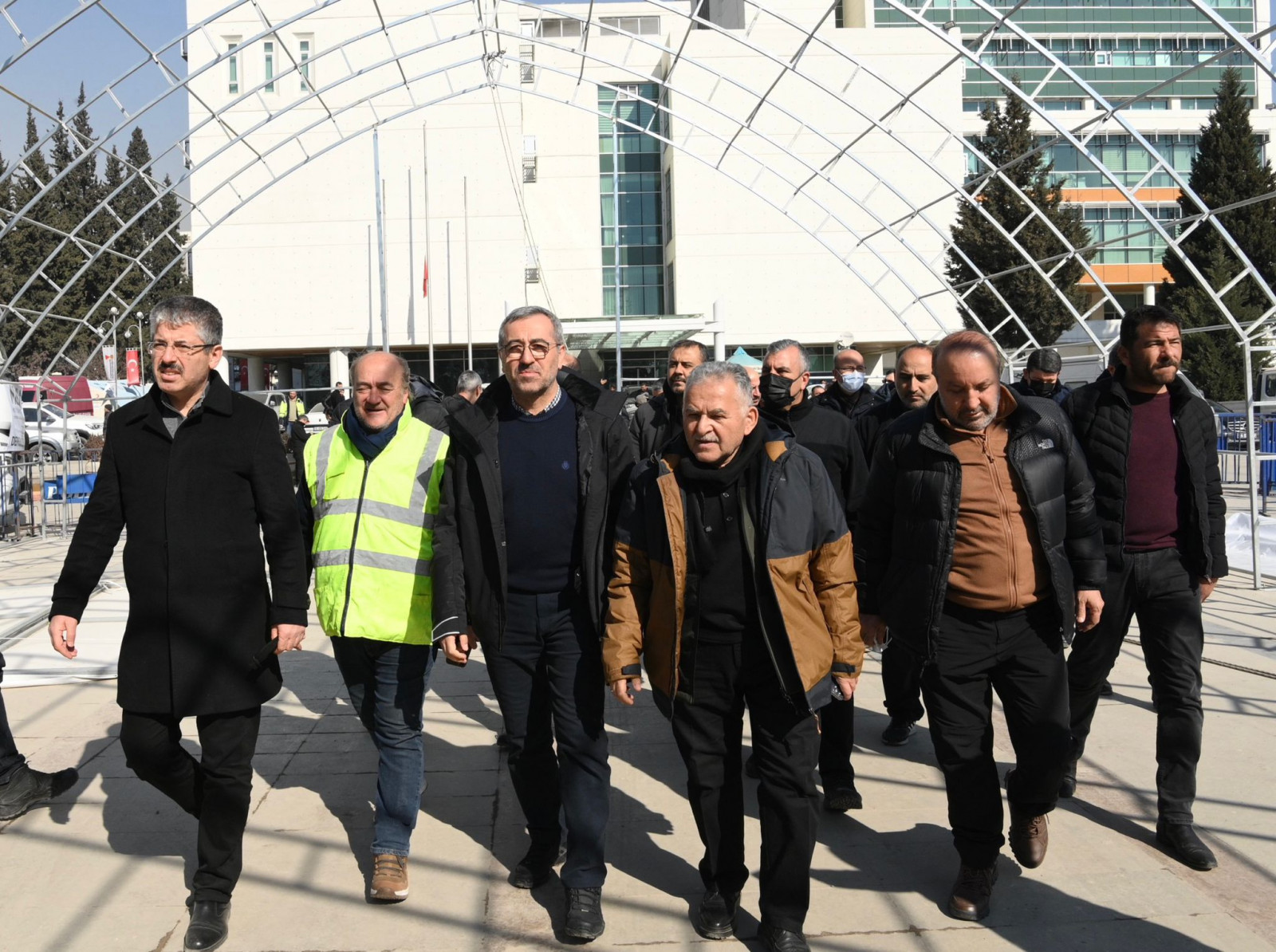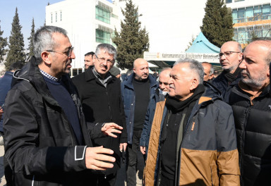 Depremin meydana geldiği ilk andan itibaren sahada vatandaşların yanında olan Kahramanmaraş Büyükşehir Belediye Başkanı Hayrettin Güngör, Milli İrade Meydanı’nda depremzedelerle bir araya gelerek geçmiş olsun dileklerini iletti. Kayseri Büyükşehir Belediye Başkanı Memduh Büyükkılıç ve ilçe belediye başkanlarının da yer aldığı ziyarette Başkan Hayrettin Güngör, gerçekleştirilen çalışmalara ilişkin heyete bilgiler aktardı. Vatandaşların barınma ve yeme içme ihtiyaçlarının karşılanması noktasında çalışmaların aralıksız devam ettiğini belirten Başkan Güngör, “6 Şubat Pazartesi günü Pazarcık ve Elbistan’da meydana gelen depremler sonrası maalesef çok sayıda vatandaşımızı kaybettik. Yaralılarımız var. Ülkemizin ve dünyanın dört bir yanından gelen yardımlarla hep birlikte yaralarımızı sarmaya çalışıyoruz. Zor günümüzde yanımızda olan herkese canı gönülden teşekkür ediyorum” dedi.