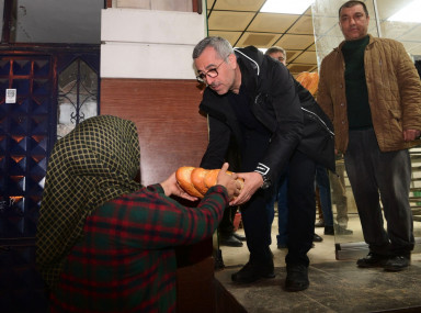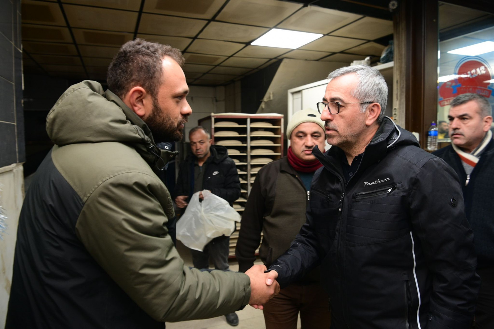 Kahramanmaraş Büyükşehir Belediye Başkanı Hayrettin Güngör, şehir merkezinde faaliyet gösteren ekmek fabrikaları ve fırınları ziyaret ederek ekmek arzı ve günlük üretimler hakkında işletme sahiplerinden bilgiler aldı. Vatandaşların barınma ve yeme içme ihtiyaçlarının karşılanması noktasında çalışmaların artarak devam ettiğini belirten Başkan Güngör, “Ülkemizin dört bir yanından yardıma gelen kamu kurum ve kuruluşlarımızın ve gönüllülerimizin de desteğiyle vatandaşlarımızın barınma ve yeme içme ihtiyaçlarının karşılanması, hemşehrilerimizin bu noktada mağduriyet yaşamamaları noktasında elimizden gelen gayreti gösteriyoruz. Depremin meydana geldiği ilk andan itibaren taziye evlerimizi depremzedelerin kullanımına açtık. Şehrimizin farklı noktalarında geçici barınma merkezleri kuruluyor. Halk Ekmek fırınımızda ürettiğimiz günlük 75 bin ekmeği vatandaşlarımıza ikram ediyoruz. Şehrimizde üretim yapabilecek ekmek fabrikaları ve fırınlara da toplamda 140 ton un desteğinde bulunuyoruz. Böylece günlük ekmek üretimimizi 225 binin üzerine çıkarıyoruz. Önümüzdeki süreçte fırıncı esnafımıza sağlayacağımız ilave desteklerle bu sayı çok daha artacaktır” dedi.