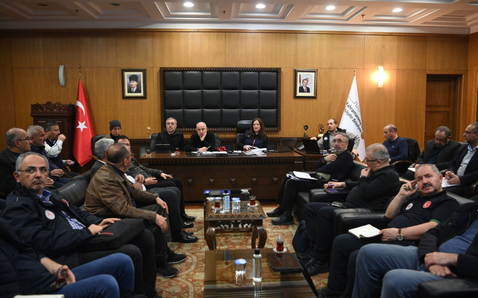 Şehrin tekrar ayağa kaldırılması ve depremzedelerin tüm ihtiyaçlarının karşılanması noktasında gecesini gündüzüne katarak çalışan Kahramanmaraş Büyükşehir Belediye Başkanı Hayrettin Güngör; ticari hayatın tekrar normale dönmesi ve işletmelerin hizmet vermeye başlaması noktasında da yoğun gayret gösteriyor. Bu kapsamda; Çevre, Şehircilik ve İklim Değişikliği Bakan Yardımcısı Fatma Varank, Vali Ömer Faruk Coşkun, milletvekilleri ve iş insanlarının katılımıyla istişare ve değerlendirme toplantısı gerçekleştirildi. Büyükşehir Belediyesi’nde gerçekleştirilen toplantıda; prefabrik çarşıların ve iş yerlerinin oluşturulması, yeni inşa edilecek sanayi alanlarının tespiti ve hayata geçirilecek projeler gibi pek çok konu görüşüldü.