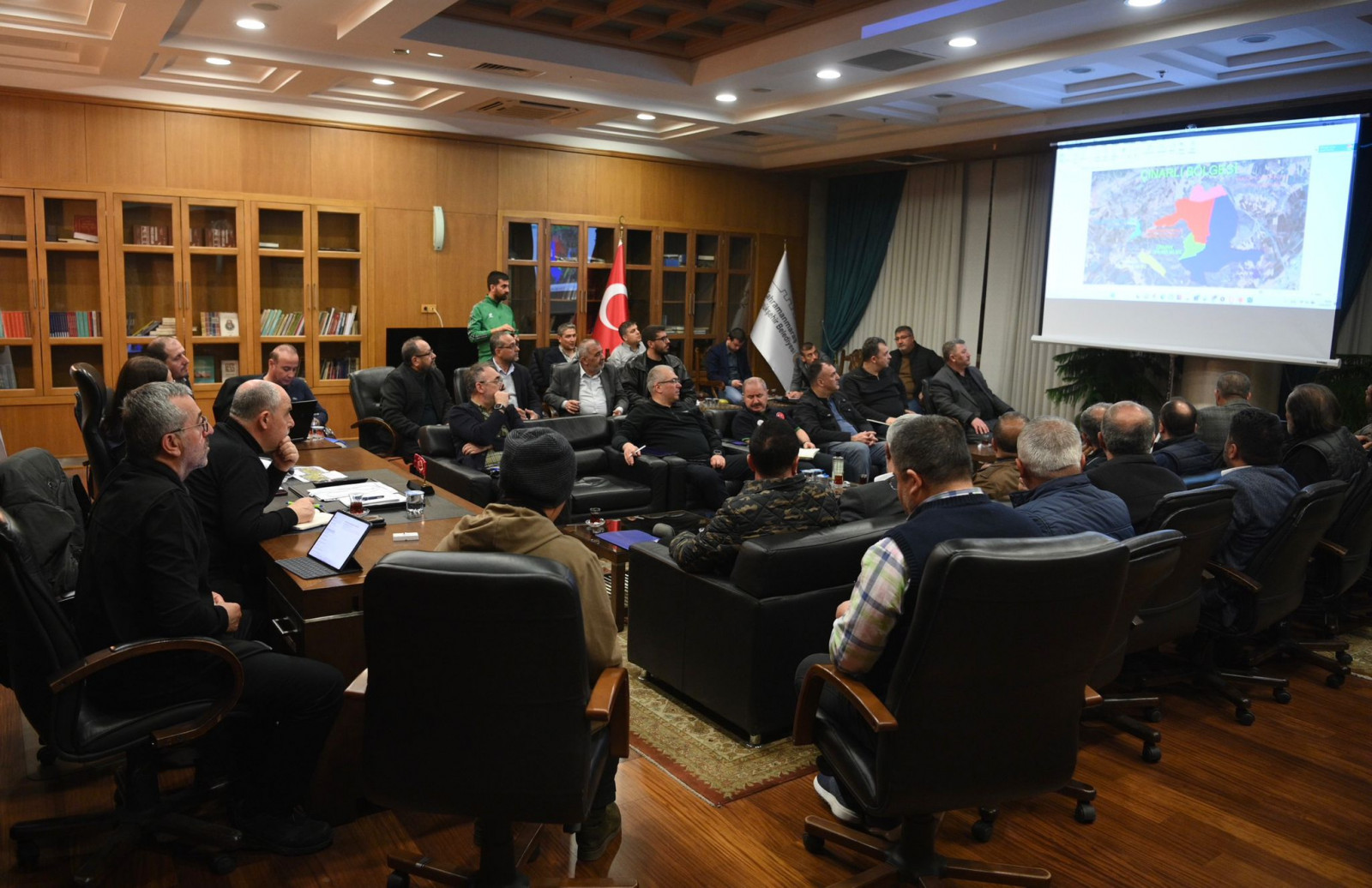 Büyükşehir Belediye Başkanı Hayrettin Güngör; Çevre, Şehircilik ve İklim Değişikliği Bakan Yardımcısı Fatma Varank, Vali Ömer Faruk Coşkun, milletvekilleri ve iş insanlarıyla bir araya gelerek yapımına başlanan prefabrik çarşılar ve yeni sanayi alanları belirleme çalışmaları ile ilgili toplantı gerçekleştirdi.