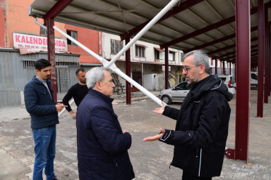 Şehirde ticari hayatın tekrar canlandırılması, esnafın hizmet vermeye başlaması için çalışmaların devam ettiğini belirten Başkan Güngör, “Şehrimizde 9 noktada geçici ticari alan oluşturuyoruz. Toptancı sitesi ve köy garajı esnafımıza destek olmak için de buraya yaklaşık 75 ticari ünite inşa ediyoruz. Büyük bir kısmı kuruldu, faaliyete geçmek üzere” dedi.