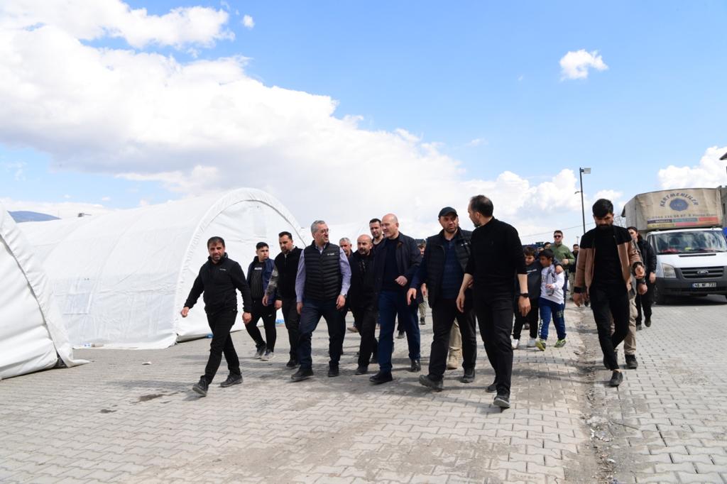 Şehrin tekrar ayağa kaldırılması ve depremzedelerin ihtiyaçlarının eksiksiz olarak karşılanması noktasında gecesini gündüzüne katarak çalışan Kahramanmaraş Büyükşehir Belediye Başkanı Hayrettin Güngör, depremin meydana geldiği ilk günden itibaren Kahramanmaraş’ta olan ve çalışmaları koordine eden İçişleri Bakanı Süleyman Soylu ile birlikte, tamamlanan ve kurulumu devam eden geçici esnaf çarşılarını ziyaret ederek incelemelerde bulundu. Kahramanmaraş Valisi Ömer Faruk Coşkun, koordinatör valiler ve AK Parti Kahramanmaraş Milletvekili Ahmet Özdemir’in de yer aldığı ziyaretlerde heyet, prefabrik ve konteyner çarşılarda gerçekleştirilen çalışmalar hakkında son bilgileri aldı.