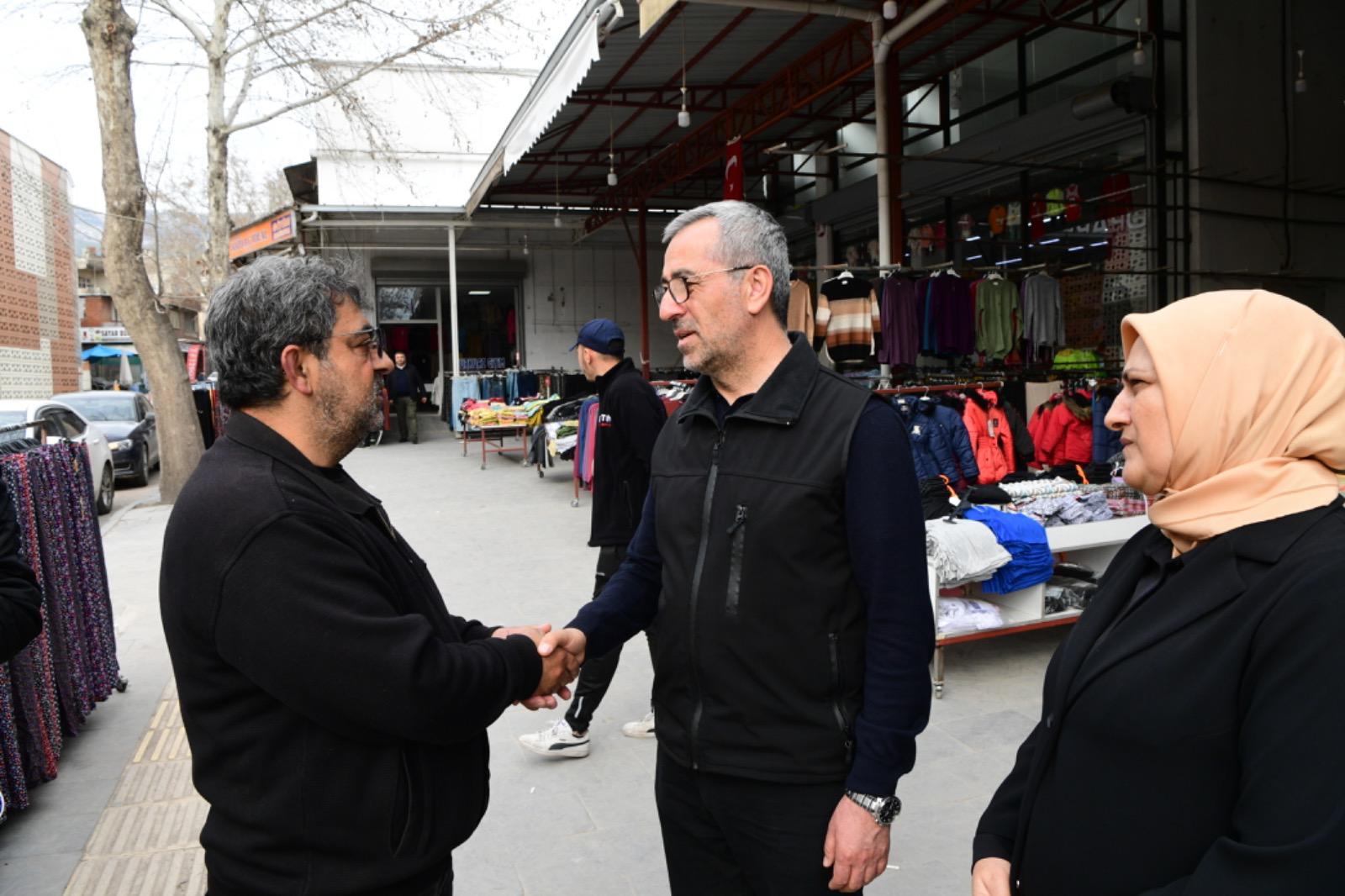 Şehrin tekrar ihya ve inşası, depremzedelerin ihtiyaçlarının karşılanması ve mağduriyet yaşamamaları noktasında gecesini gündüzüne katarak çalışan Kahramanmaraş Büyükşehir Belediye Başkanı Hayrettin Güngör, şehir merkezinde depremzedeleri ziyaret ederek geçmiş olsun dileklerini iletti ve acılarını paylaştı. Dere Pazarı’nda faaliyete başlayan esnaflarla da bir araya gelerek hayırlı işler temennisinde bulunan Başkan Hayrettin Güngör, ziyaretlerde çocuklarla da yakından ilgilendi.