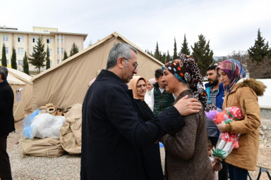 Şehirde depremzedeleri ziyaret ederek acılarını paylaşan Başkan Hayrettin Güngör, “Hemşehrilerimizin dirayetli duruşu, hükümetimize olan güvenleri ve bu şehre bağlılıklarıyla umudun adı Kahramanmaraş” dedi.