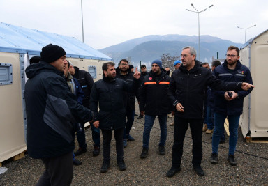 Ziyarete ilişkin değerlendirmelerde bulunan Büyükşehir Belediye Başkanı Hayrettin Güngör, “Şehrimizin ihya ve inşası, depremzede kardeşlerimizin barınma, gıda, hijyen gibi ihtiyaçlarının karşılanması ve vatandaşlarımızın mağduriyet yaşamamaları için tüm paydaşlarımızla birlikte yoğun gayret gösteriyoruz. Depremzedelerimiz için şehrimizin farklı noktalarına geçici barınma merkezleri ve sosyal marketler, çocuklarımız için oyun alanları oluşturuluyor. Büyükşehir Belediyesi olarak bizler de bu mekanların altyapı imalatlarını gerçekleştiriyoruz. Geçici barınma merkezlerimize asfalt yollar inşa ediyoruz. Tüm imkanlarımızla şehrimiz ve hemşehrilerimiz için sahadayız” diye konuştu.