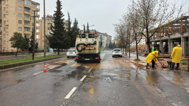 Kahramanmaraş Büyükşehir Belediyesi, dün akşam saatlerinde etkisini artıran ve gece boyunca devam eden sağanak yağışların çevreye verdiği hasar ve tahribatları ortadan kaldırmak için şehirde su tahliyesi ve temizlik çalışmalarını sürdürüyor. Çevre Koruma ve Kontrol Dairesi Başkanlığı koordinesinde yürütülen çalışmalarla, sağanak yağışın cadde ve sokaklarda bıraktığı izler siliniyor. Şehrin muhtelif noktalarında selin geride bıraktığı balçıklar iş makineleriyle temizlenirken, arterler de ulaşıma açık tutuluyor. Çevre Koruma ve Kontrol Dairesi Başkanlığı’ndan yapılan açıklamada; sağanak yağışların meydana getirdiği tahribatların ortadan kaldırılması ve vatandaşların mağduriyet yaşamamaları için çalışmaların kesintisiz devam ettiği belirtildi.