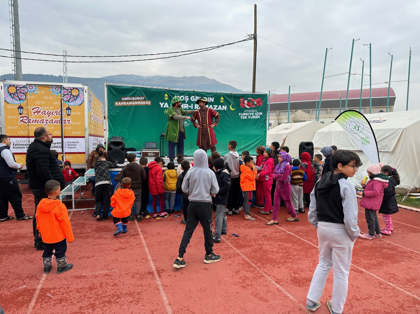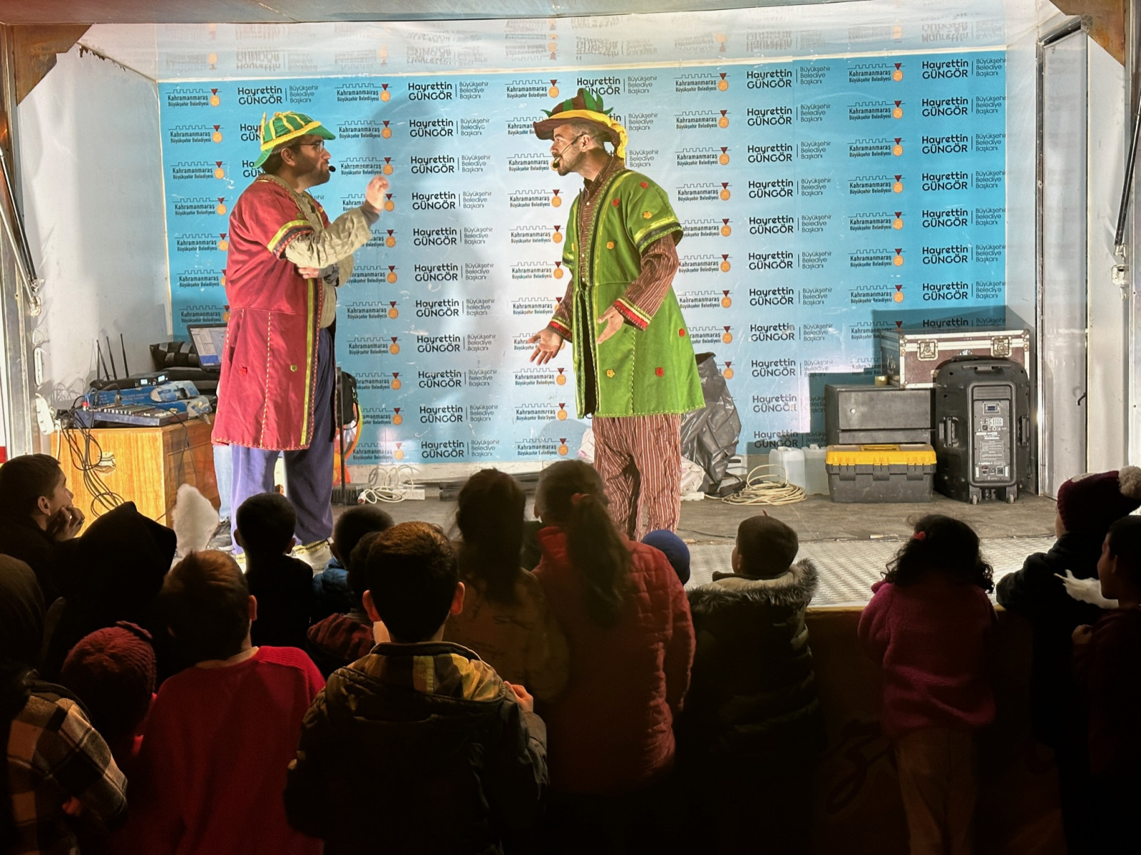Depremin yol açtığı yaraların sarılması ve hayatın normale dönmesi noktasında Başkan Hayrettin Güngör öncülüğünde yoğun gayret gösteren Kahramanmaraş Büyükşehir Belediyesi, afet sonrası çocukların yaşayabileceği travmaları en aza indirmek için psiko-sosyal destekler ile miniklere yönelik faaliyetlerini sürdürüyor. Bu kapsamda geçici barınma merkezlerinde çocuklara yönelik çeşitli etkinlikler gerçekleştiriliyor. Barınma merkezlerine kurulan şişme oyun alanlarında eğlencenin tadını çıkaran çocuklar, sahnelenen geleneksel Karagöz Hacivat gösterisini de büyük bir ilgiyle takip ediyor. Renkli dekor ve eğlenceli konularıyla miniklerin beğenisi kazanan tiyatro gösterileri, çeşitli müzik ve danslarla da çocukların neşe kaynağı oluyor. Büyükşehir Belediyesi’nden yapılan açıklamada, oyun alanlarının ve çeşitli etkinliklerin şehir merkezinde ve ilçelerde çocuklarla buluşmaya devam edeceği belirtildi.