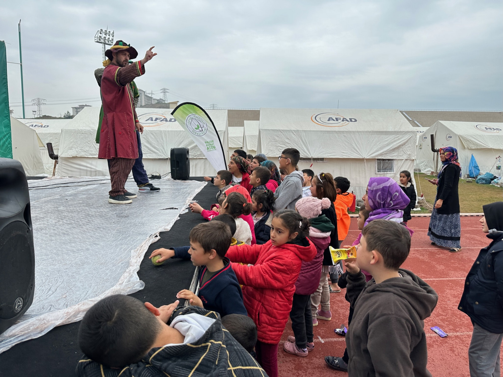 Büyükşehir Belediyesi, geçici barınma merkezlerinde çocuklara yönelik etkinliklerini sürdürüyor. Barınma merkezlerine kurulan şişme oyun alanlarında eğlencenin tadını çıkaran minikler, sahnelenen geleneksel Karagöz Hacivat gösterisini de büyük bir ilgiyle takip ediyor.