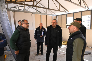 Ağrı Valisi Dr. Osman Varol ve Sakarya Valisi Çetin Oktay Kaldırım ile bölgeyi ziyaret ederek çalışmaları yerinde inceleyen Kahramanmaraş Büyükşehir Belediye Başkanı Hayrettin Güngör, “Esnafımızın ticari faaliyetlerini sürdürebilmesi için valiliklerimiz ve belediyelerimizin destekleriyle geçici çarşı kurulumlarımız sürüyor. Tamamlanan 24 çarşımızda esnaflarımız faaliyetlerine başladı. Büyükşehir Belediyesi olarak bizler de Kuzey Çevre Yolu üzerindeki Kuzey Park’a 24 iş yerinden oluşan prefabrik çarşı inşa ediyoruz. Dükkanlarımız 30 metrekare olacak. İnşallah kısa süre içerisinde çalışmalarımızı tamamlayarak iş yerlerimizi hizmete hazır hale getireceğiz. Şehrimizin tekrar ayağa kaldırılması noktasında gayret gösteren herkese teşekkür ediyoruz. El birliğiyle şehrimizi ihya ve inşa edeceğiz” ifadelerini kullandı.
