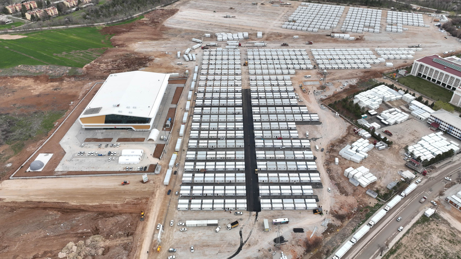 Ülkenin dört bir yanından yardıma gelen kurum ve belediyelerin de destekleriyle şehre yeni geçici barınma merkezleri kazandıran Kahramanmaraş Büyükşehir Belediyesi, konaklama alanlarında alt ve üstyapı çalışmalarını da kesintisiz sürdürüyor. Fen İşleri Dairesi Başkanlığı’na bağlı ekipler, MÜSİAD tarafından Elbistan’da Pınarbaşı Mahallesi’ne kurulan ve 2 bin 100 afetzede aileye ev sahipliği yapacak konteyner kentte sıcak asfalt çalışmalarına devam ediyor. Yoğun bir şekilde devam eden çalışmalarla, hazırlanan toplamda 17 bin metrekarelik alana asfalt yollar kazandırılıyor. Gece gündüz devam eden alt ve üstyapı çalışmaları ile konteyner kurulumlarının tamamlanmasının ardından geçici konaklama merkezinin depremzedelerin hizmetine sunulması hedefleniyor.