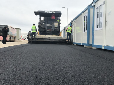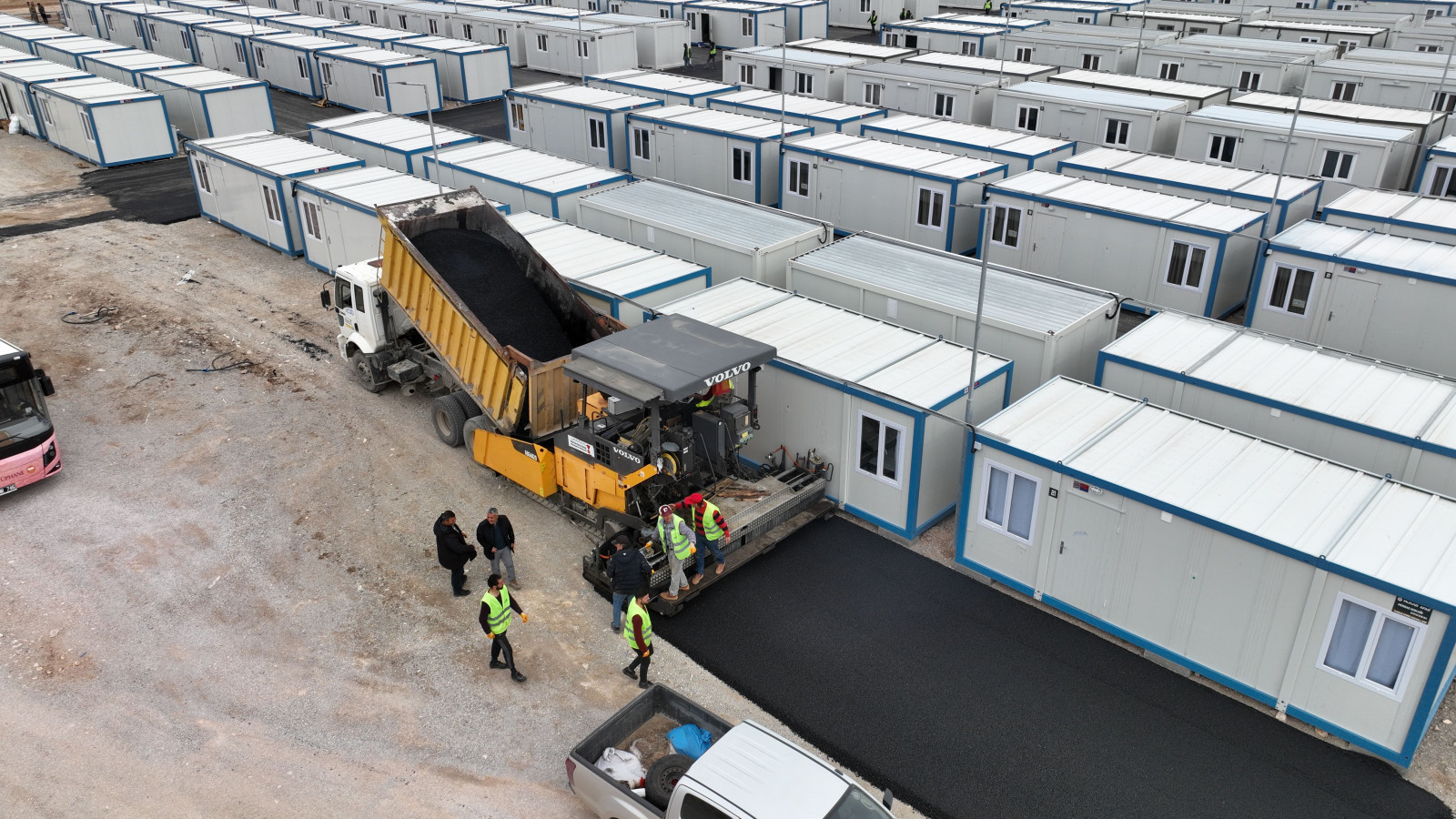 Büyükşehir Belediyesi, MÜSİAD tarafından Elbistan’da Pınarbaşı Mahallesi’ne inşa edilen geçici konaklama merkezinde asfalt çalışmalarını sürdürüyor.