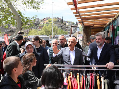 Kahramanmaraş Büyükşehir Belediye Başkanı Hayrettin Güngör, Tarım ve Orman Bakanı ve AK Parti Kahramanmaraş Milletvekili Adayı Prof. Dr. Vahit Kirişci ile Tarihi Kapalı Çarşı ve bölgeye inşa edilen geçici iş yerlerinde faaliyet gösteren esnafları ziyaret etti. Vali Ömer Faruk Coşkun ve AK Parti İl Başkanı Fırat Görgel’in de yer aldığı ziyarette esnafların taleplerini dinleyen ve hayırlı işler dilekleri ileten Başkan Güngör ve Bakan Kirişci, vatandaşlarla da sohbet etti. Ziyarete ilişkin açıklamalarda bulunan Başkan Güngör, “Şehrimizin yeniden imarı ve hayatın normale dönmesi noktasında devlet millet el birliğiyle yoğun gayret gösteriyoruz. Bakanımız ve milletvekili adayımız Sayın Vahit Kirişci, Valimiz ve İl Başkanımızla birlikte Kapalı Çarşı ve bölgede kurulan geçici iş yerlerinde faaliyetlerini sürdüren esnaflarımızı ziyaret ederek işlerinde sürur ve bereket diledik, Kadir Gecelerini tebrik ettik. İnşallah el birliğiyle Kahramanmaraş’ımızı çok daha iyi bir şekilde ayağa kaldıracağız. Rabbim birliğimizi, dirliğimizi daim eylesin” dedi.