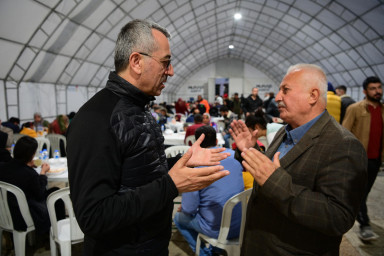 Kahramanmaraş Büyükşehir Belediye Başkanı Hayrettin Güngör, Vali Ömer Faruk Coşkun ile Ramazan ayının son gününde Milli İrade Meydanı’ndaki Büyükşehir Belediyesi’nin aşevinde vatandaşlarla birlikte iftar yaptı. İftar çadırında vatandaşlarla bir araya gelerek sohbet eden ve bayramlarını tebrik eden Başkan Güngör, “Bugün de iftar sofralarında hemşehrilerimizle bir araya geldik, orucumuzu açtık. Rabbim tuttuğumuz oruçlarımızı kabul, birlik ve beraberliğimizi daim eylesin. Hamdolsun Ramazan ayımızı hep birlikte eda ettik ve bayrama kavuşuyoruz. Maalesef yaşadığımız büyük felaket dolayısıyla buruk bir bayram geçireceğiz. Asrın felaketinde hayatını kaybeden kardeşlerimize bir kez daha Allah’tan rahmet diliyorum. Bu vesileyle tüm hemşehrilerimizin ve İslam âleminin Ramazan Bayramı’nı tebrik ediyorum” dedi.