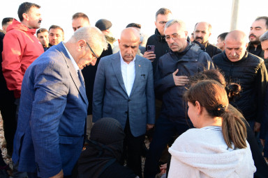 Büyükşehir Belediye Başkanı Hayrettin Güngör, Tarım ve Orman Bakanı Vahit Kirişci ile meydana gelen şiddetli fırtına sonucu hasar alan Pazarcık’ı ziyaret ederek afetzedelerle bir araya geldi.