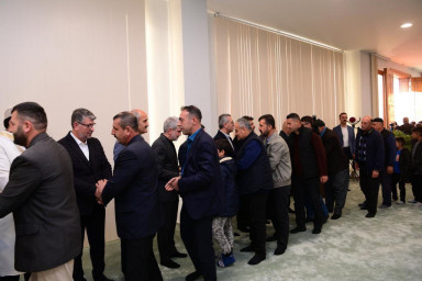 Kahramanmaraş Büyükşehir Belediye Başkanı Hayrettin Güngör, Dulkadiroğlu Kamu Külliyesi’nde kılınan bayram namazının ardından vatandaşlarla bir araya gelerek bayramlarını tebrik etti. Tarım ve Orman Bakanı Prof. Dr. Vahit Kirişci, Vali Ömer Faruk Coşkun, Dulkadiroğlu Kaymakamı Dr. Fatih Çelikkaya, Dulkadiroğlu Belediye Başkanı Necati Okay ve AK Parti İl Başkanı Fırat Görgel’in de yer aldığı bayramlaşma programı sonrası açıklamalarda bulunan Başkan Güngör, “Ramazan ayımızı uğurlamanın hüznü içerisinde bayramımıza kavuştuk. Hemşehrilerimizle birlikte Ramazan ayımızı eda ettik, iftar sofralarında bir araya geldik. Rabbim tuttuğumuz oruçlarımızı kabul eylesin. Maalesef 6 Şubat’ta yaşadığımız büyük afet dolayısıyla neşemiz gölgeli, sevincimiz buruk. Yüreklerimiz ne kadar mahzun olsa da tebessümlerle iyileşeceğiz. Dulkadiroğlu Kamu Külliyesi’nde eda ettiğimiz Bayram Namazı’nın akabinde hemşehrilerimizle bayramlaştık. Ramazan Bayramı’mızın şehrimize, ülkemize, İslam coğrafyasına ve tüm dünyaya huzur, barış, sağlık ve mutluluk getirmesini diliyorum” dedi.