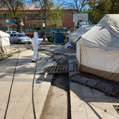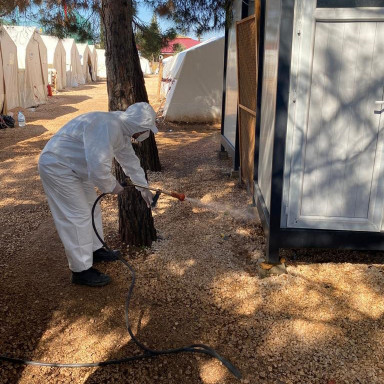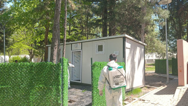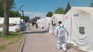 Büyükşehir Belediyesi, geçici barınma merkezleri başta olmak üzere ortak kullanım alanlarında temizlik, ilaçlama ve dezenfeksiyon çalışmalarını sürdürüyor.