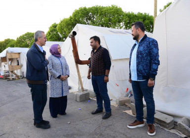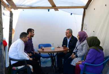 Şehrin farklı noktalarında vatandaşlarla bir araya gelmeyi sürdüren Kahramanmaraş Büyükşehir Belediye Başkanı Hayrettin Güngör, Dulkadiroğlu ilçesi Eyüp Sultan Mahallesi’ndeki geçici barınma merkezinde depremzedeleri ziyaret etti. Vatandaşların çadır ve konteynerlerine misafir olan, hane halkıyla sohbet eden ve taleplerini dinleyen Başkan Güngör, ziyarette çocuklarla da yakından ilgilendi.