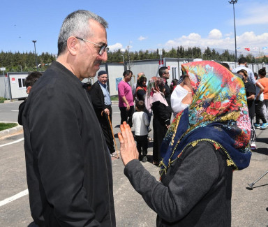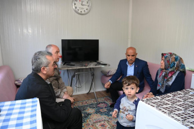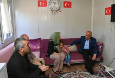 Kahramanmaraş Büyükşehir Belediye Başkanı Hayrettin Güngör, Tarım ve Orman Bakanı ve AK Parti 28. Dönem Kahramanmaraş Milletvekili Adayı Prof. Dr. Vahit Kirişci ile Karacasu Geçici Konaklama Merkezi’ni ziyaret etti. Vali Ömer Faruk Coşkun ve AK Parti İl Başkanı Fırat Görgel’in de yer aldığı ziyarette heyet, vatandaşların hanelerine misafir oldu. Hane halkıyla sohbet eden ve taleplerini dinleyen Başkan Güngör, çocuklarla da yakından ilgilendi.