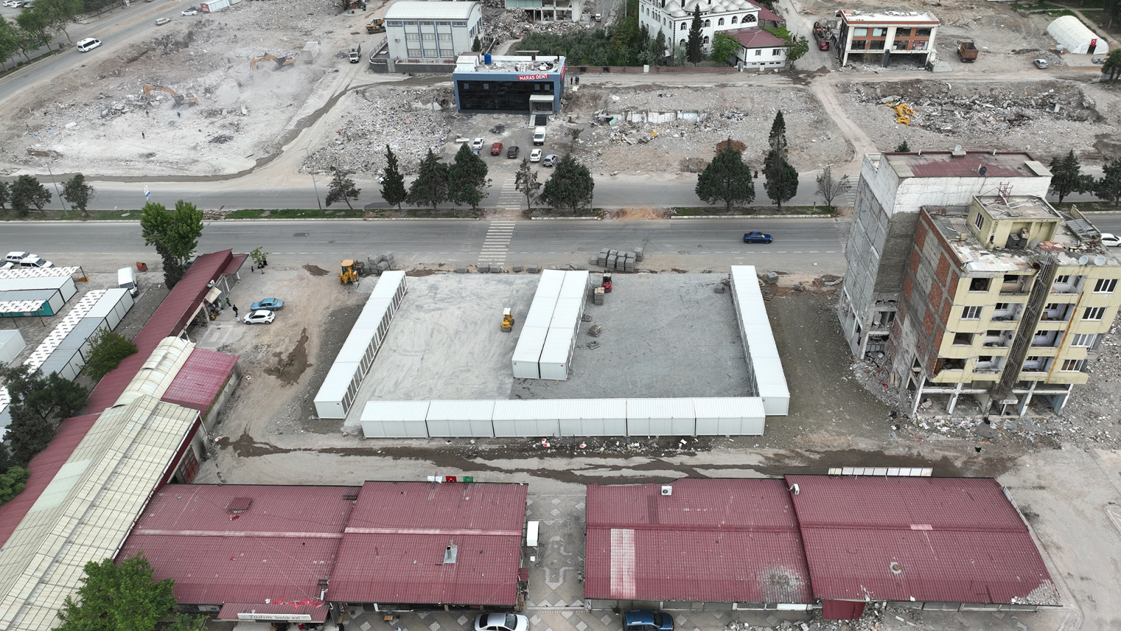 Şehrin tekrar ayağa kaldırılması ve hayatın normale dönmesi noktasında tüm alanlarda çalışmalarını kesintisiz sürdüren Kahramanmaraş Büyükşehir Belediyesi, kurum ve kuruluşlar ile kardeş belediyelerin de destekleriyle şehre yeni geçici çarşılar kazandırmaya devam ediyor. Bu kapsamda, Onikişubat’ta Şazibey ve Hayrullah mahalleleri ile Dulkadiroğlu’nda Trabzon Caddesi’ne inşa edilen geçici esnaf çarşılarında başvurular başladı. Geçici çarşılarda iş yeri sahibi olmak isteyen esnaflar, 2 Mayıs Salı günü mesai bitimine kadar Büyükşehir Belediyesi Ana Hizmet Binası’nda bulunan Ticaret ve Sanayi Dönüşüm Ofisi’nden bizzat veya Büyükşehir Belediyesi’nin internet sitesinden çevrimiçi başvuru yapabilecek. Yapılan açıklamada, başvurulara ilişkin detaylı bilgiye Büyükşehir Belediyesi’nin internet sitesinde duyurular bölümünden ulaşılabileceği belirtildi.