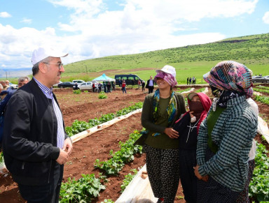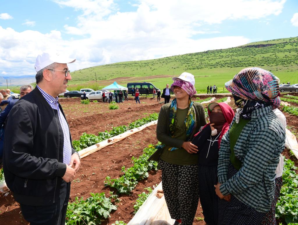 Kadıoğluçiftliği’ni ziyaret ederek çiftçi ve tarım işçileriyle bir araya gelen Başkan Güngör, “İnşallah Sayın Tarım ve Orman Bakanımızın öncülüğünde üreticilerimiz ve tarım işçilerimizle el birliğiyle şehrimizin tarımsal üretimini ve katma değerini artırmaya devam edeceğiz” dedi.