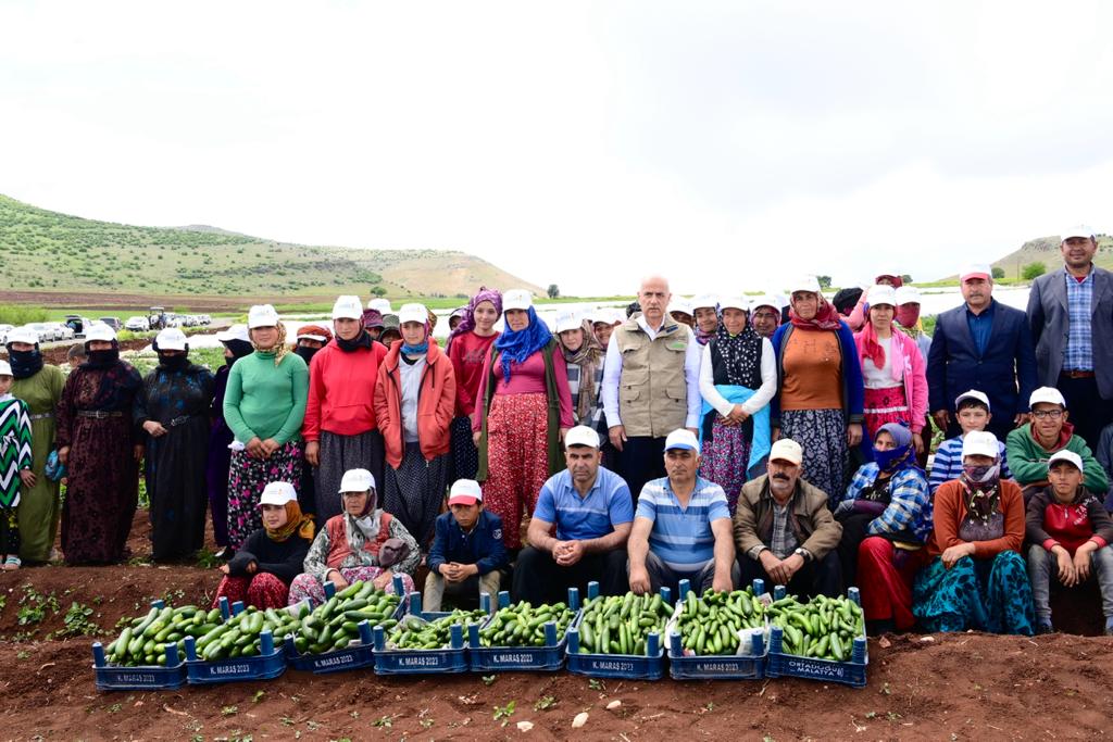 Kahramanmaraş Büyükşehir Belediye Başkanı Hayrettin Güngör, Tarım ve Orman Bakanı Prof. Dr. Vahit Kirişci ile şehrin en önemli tarımsal üretim merkezlerinden Türkoğlu ilçesi Kadıoğluçiftliği Mahallesi’ni ziyaret ederek çiftçi ve tarım işçileriyle bir araya geldi. Türkoğlu Belediye Başkanı Osman Okumuş, AK Parti İl Başkanı Fırat Görgel ve teşkilat mensuplarının da yer aldığı ziyarette, salatalık hasadı yapan işçilerle buluşan Bakan Kirişci ve Başkan Güngör, çalışanlarla sohbet etti ve taleplerini dinledi. Kadıoğluçiftliği’nde çiftçilerin katılımıyla düzenlenen istişare ve değerlendirme toplantısında Bakan Kirişci, şehirde tarım alanında hayata geçirilen ve planlanan projelere ilişkin katılımcılara bilgiler aktardı.