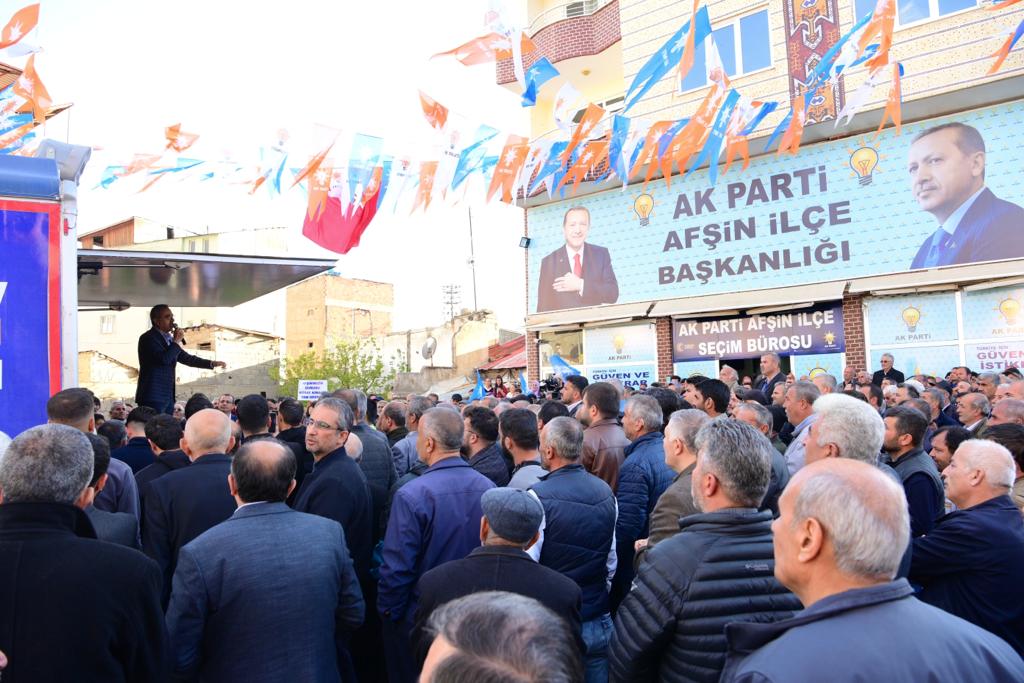 Bakan Kirişci ve Başkan Güngör, AK Parti Afşin İlçe Seçim Bürosu’nun açılış programına katıldı. Açılış programında konuşan Büyükşehir Belediye Başkanı Hayrettin Güngör, “Büyük bir afet yaşadık ancak yaralarımızı Sayın Cumhurbaşkanımızın liderliğinde devlet millet el ele hızla sarıyoruz. Kalıcı konutların inşası tüm hızıyla devam ediyor. Depremin ilk anından itibaren tüm imkân ve kabiliyetiyle yanımızda olan kurum ve kuruluşlarımıza, kardeş belediyelerimize ve STK’larımıza canı gönülden teşekkür ediyoruz. Şehirlerimizin ve ülkemizin hızla kalkınmaya devam etmesi için de 14 Mayıs seçimleri son derece önemli. İnşallah 14 Mayıs’ta Türkiye Yüzyılı için ‘Doğru Zaman, Doğru Adam’ diyerek Sayın Cumhurbaşkanımıza ve partimize desteklerimizi sürdüreceğiz” cümlelerini kaydetti.
