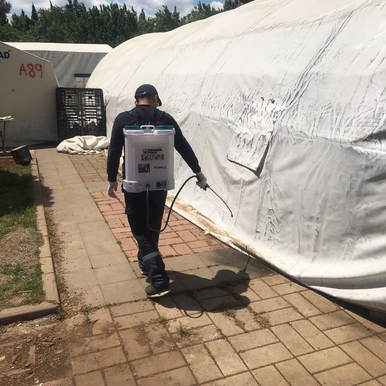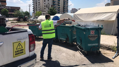 Büyükşehir Belediyesi, geçici barınma merkezleri başta olmak üzere ortak kullanım alanlarında günlük temizlik, ilaçlama ve dezenfeksiyon çalışmalarını sürdürüyor.