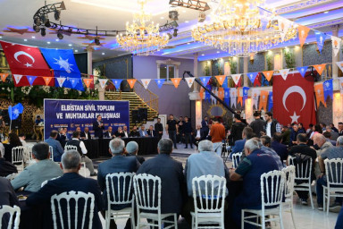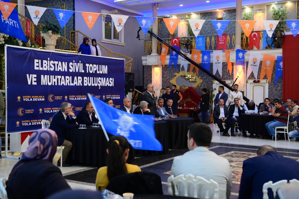 Ziyaret heyeti devamında ‘Elbistan Sivil Toplum ve Muhtarlar Buluşması’na katıldı. Muhtarlar, STK ve siyasi parti temsilcileri ve teşkilat mensuplarının katılımıyla gerçekleştirilen programda konuşan Başkan Güngör, “2019 yılından günümüze kadar Elbistan’ımızda çok ciddi yatırımlar gerçekleştirdik. İlçemize 250 kilometre asfalt, 230 bin metrekare parke, 3 köprü ve 3 halı saha kazandırdık. Yaklaşık 400 Milyon TL’lik yatırımla inşa ettiğimiz İleri Biyolojik Atıksu Arıtma Tesisi de ilçemiz için son derece önemli bir proje. İlçemizin en az 100 yıllık içmesuyu sorununu çözüme kavuşturacak Akdere İsale Hattı projemiz de devam ediyor. İlçemizin içmesuyu altyapısını baştan sona yeniliyoruz. Çalışmalar başladı. Yaklaşık 320 kilometre içmesuyu hattı