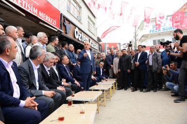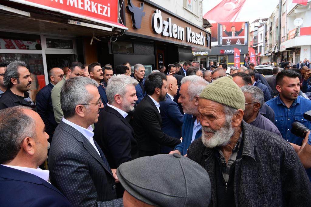 Bakan Kirişci ve Başkan Güngör, İleri Biyolojik Atıksu Arıtma Tesisi’nin incelenmesinin ardından AK Parti Elbistan Seçim Koordinasyon Merkezi ve MHP Seçmen İletişim Merkezi’ni ziyaret ederek partililerle bir araya geldi. Burada vatandaşlarla sohbet eden ve taleplerini dinleyen Başkan Güngör, yaptığı konuşmada, “6 Şubat’ta yaşadığımız büyük afet sonrası Sayın Cumhurbaşkanımızın liderliğinde tüm bakanlıklarımız, kurum ve kuruluşlarımızla yaralarımızı hızla sarıyoruz. Daha iyi şehirler inşa etmek için gayret gösteriyoruz. Yaşadığımız coğrafyada her seçim olduğu gibi 14 Mayıs seçimleri de son derece önemli. İnşallah 14 Mayıs’ta Sayın Cumhurbaşkanımıza ve partimize en büyük desteği sağlayan şehir olacağız. 15 Mayıs sabahı Cumhurbaşkanımız Sayın Recep Tayyip Erdoğan’ın liderliğinde Türkiye yeni ümitlerle, yeni projelerle yoluna devam edecek” ifadelerini kullandı.