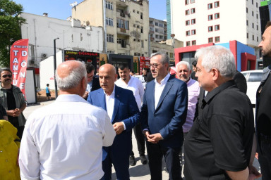 Tarım ve Orman Bakanı Prof. Dr. Vahit Kirişci ile Samsun Çarşısı’nı ziyaret ederek esnaflarla bir araya gelen Başkan Güngör, “Şehir merkezinde 2 bin 436, ilçelerimizde ise bin 619 olmak üzere toplamda 4 bin 55 geçici iş yeri planlandı. Bunların büyük bir kısmı tamamlanarak kura ile esnaflarımıza teslim edildi ve faaliyetlere başladı. Esnaf kardeşlerimizin mağduriyet yaşamamaları noktasında yoğun gayret gösteriyoruz” dedi.