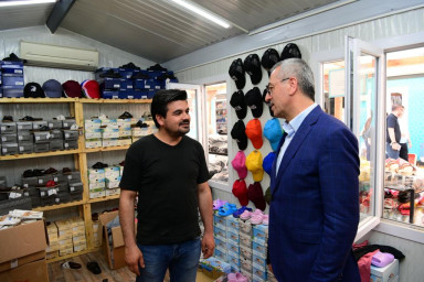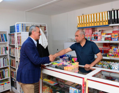 Şehrin çeşitli noktalarında vatandaşlarla bir araya gelmeyi sürdüren Kahramanmaraş Büyükşehir Belediye Başkanı Hayrettin Güngör, depremde iş yerleri yıkılan veya hasar alan esnafların ticari faaliyetlerini sürdürmesi için oluşturulan geçici çarşıları ziyaret etti. Geçici iş yerlerinde faaliyetlerini sürdüren esnaflarla sohbet eden ve işlerinde bereket dileyen Başkan Güngör, ziyaretlere ilişkin yaptığı açıklamada, “Asrın felaketinin ardından Sayın Cumhurbaşkanımızın liderliğinde bakanlıklarımız, kurum ve kuruluşlarımızla el birliğiyle yaralarımızı hızla sarıyoruz. Bir taraftan konteyner kentler tamamlanırken bir yandan kalıcı konutların inşası devam ediyor. Esnaflarımızın faaliyetlerini sürdürmesi ve ticaretin canlanması için de geçici çarşılar oluşturuyoruz. Bugün geçici çarşılarımızı ziyaret ederek esnaflarımızla bir araya geldik. Esnaflarımızın memnuniyetini görünce bizler de mutlu olduk” dedi.