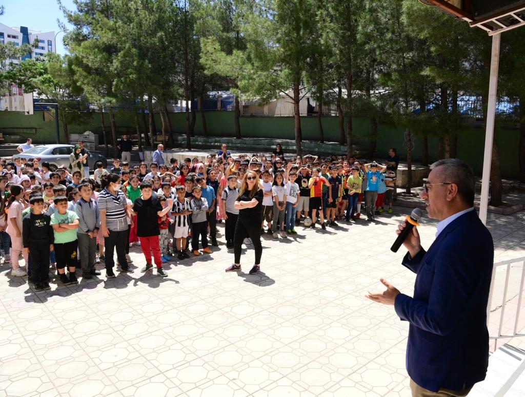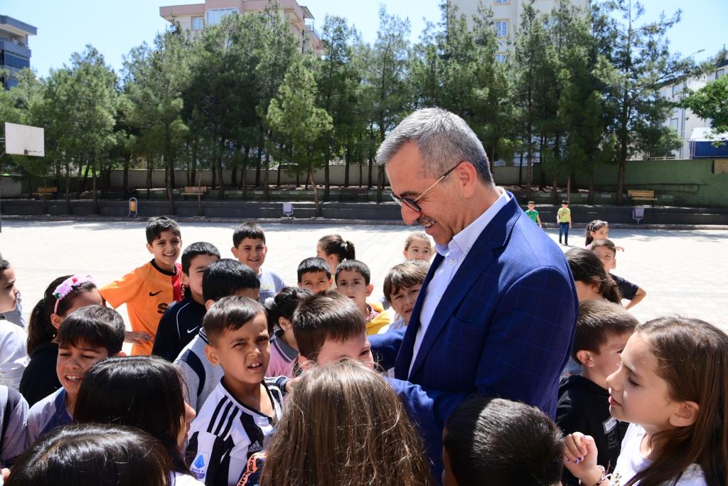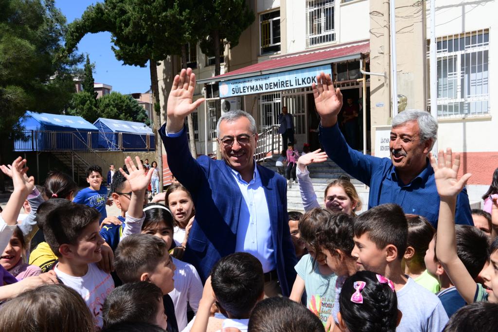 Süleyman Demirel İlkokulu’nda öğrencilerle bir araya gelen Başkan Güngör, “Yavrularımıza daha yaşanabilir bir şehir bırakmak için tüm imkân ve kabiliyetimizle gayret ediyoruz. Şehrimiz ve hemşehrilerimiz için gece gündüz var gücümüzle çalışıyoruz” dedi.