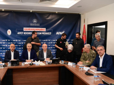 Kahramanmaraş Büyükşehir Belediye Başkanı Hayrettin Güngör, şehrin tekrar ayağa kaldırılması noktasında yürütülen çalışmaları yerinde incelemek ve bir dizi ziyarette bulunmak üzere Kahramanmaraş’a gelen İçişleri Bakanı Ali Yerlikaya ile Afet Koordinasyon Merkezi’nde düzenlenen istişare ve değerlendirme toplantısına katıldı. Bakan Yerlikaya başkanlığında gerçekleştirilen toplantıda; önceki dönem Tarım ve Orman Bakanı ve AK Parti Kahramanmaraş Milletvekili Prof. Dr. Vahit Kirişci, Vali Ömer Faruk Coşkun, Garnizon Komutanı Tuğgeneral Emin Mehmet Terzioğlu, AK Parti Kahramanmaraş Milletvekilleri, AK Parti İl Başkanı Fırat Görgel, bakanlık ve kurum yetkilileri de yer aldı.