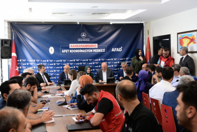 Kahramanmaraş Büyükşehir Belediye Başkanı Hayrettin Güngör, bir dizi ziyaret ve incelemelerde bulunmak üzere şehre gelen Aile ve Sosyal Hizmetler Bakanı Mahinur Özdemir Göktaş ile Afet Koordinasyon Merkezi’nde gerçekleştirilen istişare ve değerlendirme toplantısına katıldı. Önceki dönem Tarım ve Orman Bakanı ve AK Parti Kahramanmaraş Milletvekili Prof. Dr. Vahit Kirişci, Vali Ömer Faruk Coşkun, AK Parti Kahramanmaraş Milletvekilleri, İl Başkanı Fırat Görgel ile bakanlık ve kurum yetkililerinin de yer aldığı toplantıda, şehirde yürütülen ve planlanan çalışmalara ilişkin değerlendirmelerde bulunuldu. Toplantıya ilişkin açıklamalarda bulunan Güngör, “Deprem sonrası alanındaki çalışmaları yerinde tespit etmek üzere şehrimize gelen Aile ve Sosyal Hizmetler Bakanımız Sayın Mahinur Özdemir Göktaş, önceki dönem Tarım ve Orman Bakanımız Sayın Vahit Kirişci, milletvekillerimiz, il başkanımız ve AFAD yetkililerimizle şehrimizde yürütülen çalışmalara ilişkin istişare ve değerlendirme toplantımızı gerçekleştirdik. Tüm paydaşlarımızla birlikte şehrimizin her alanda yeniden imarı ve inşası noktasında yoğun gayret gösteriyoruz” ifadelerini kullandı.
