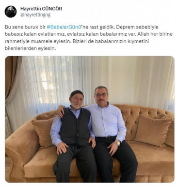 Büyükşehir Belediye Başkanı Hayrettin Güngör, Babalar Günü dolayısıyla yaptığı paylaşımda, “Bu sene buruk bir Babalar Günü’ne rast geldik. Deprem sebebiyle babasız kalan evlatlarımız, evlatsız kalan babalarımız var. Allah her birine rahmetiyle muamele eylesin. Bizleri de babalarımızın kıymetini bilenlerden eylesin” dedi.