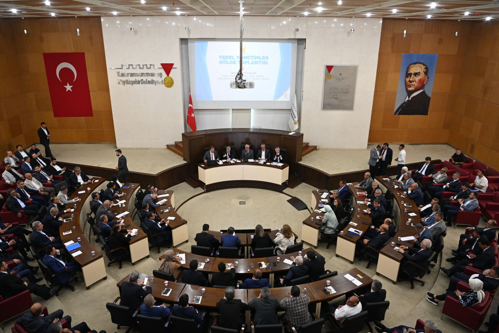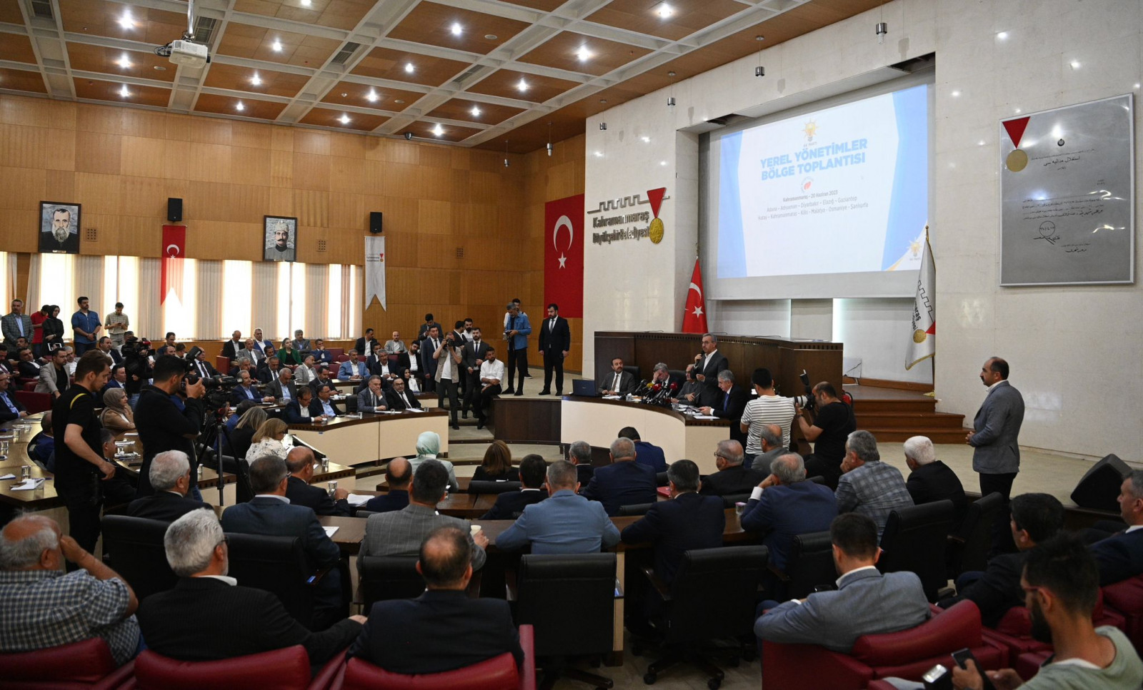 Kahramanmaraş Büyükşehir Belediye Başkanı Hayrettin Güngör, AK Parti Genel Merkez Yerel Yönetimler Başkanı Yusuf Ziya Yılmaz’ın başkanlığında gerçekleştirilen AK Parti Yerel Yönetimler Bölge Toplantısı’na katıldı. Büyükşehir Belediyesi Meclis Toplantı Salonu’nda gerçekleştirilen programda; deprem bölgesindeki büyükşehir, il, ilçe ve belde belediye başkanları, AK Parti İl Başkanı Fırat Görgel ve teşkilat mensupları da yer aldı. Programın açılış konuşmasını yapan İl Başkanı Fırat Görgel, deprem sonrası süreçte şehirlerin tekrar ayağa kaldırılması noktasında yoğun gayret gösteren başta Cumhurbaşkanı Recep Tayyip Erdoğan olmak üzere emeği geçen tüm kurum ve kuruluşlara, belediyelere, STK’lara ve gönüllülere teşekkür etti.